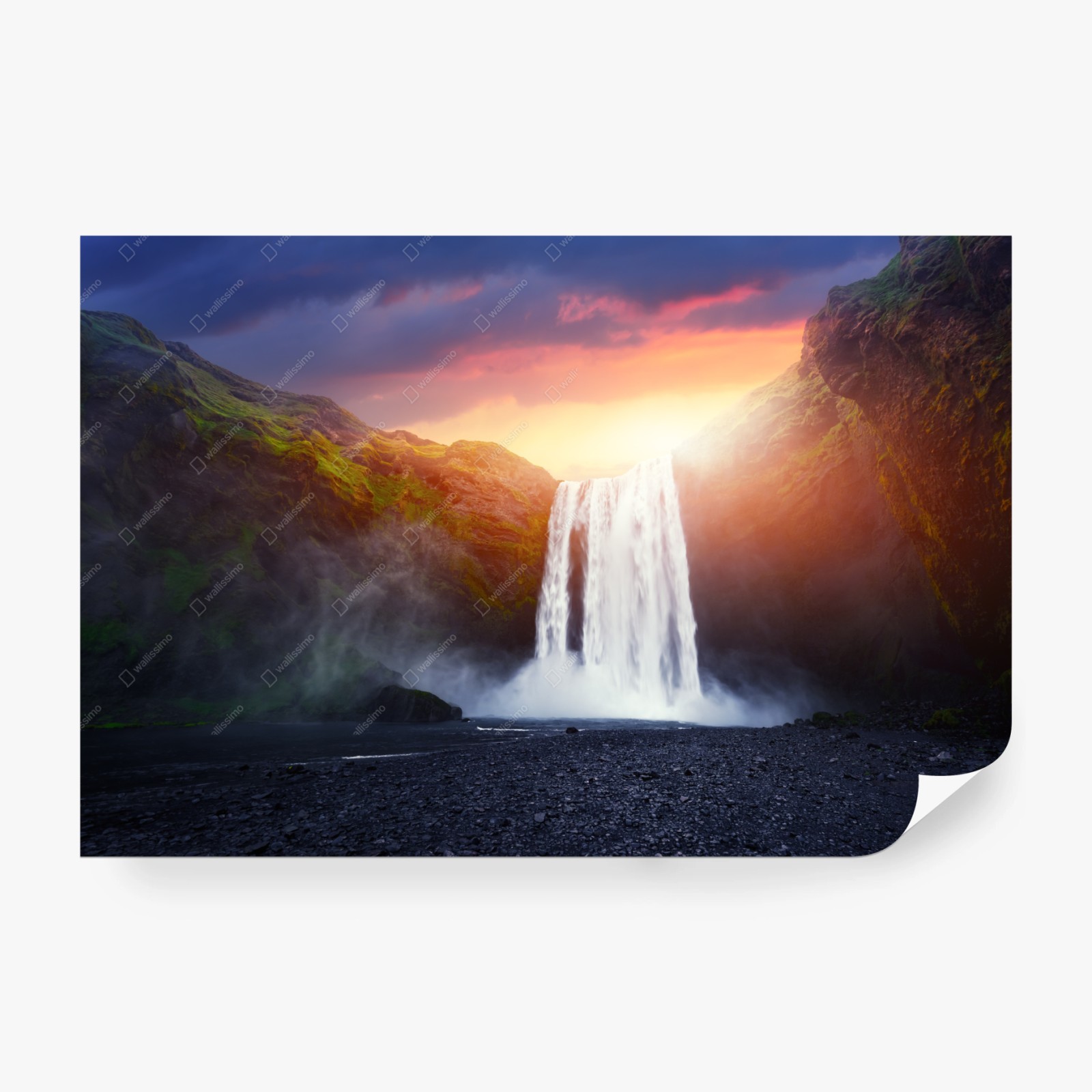 Fototapete Sonnenuntergang am wasserfall