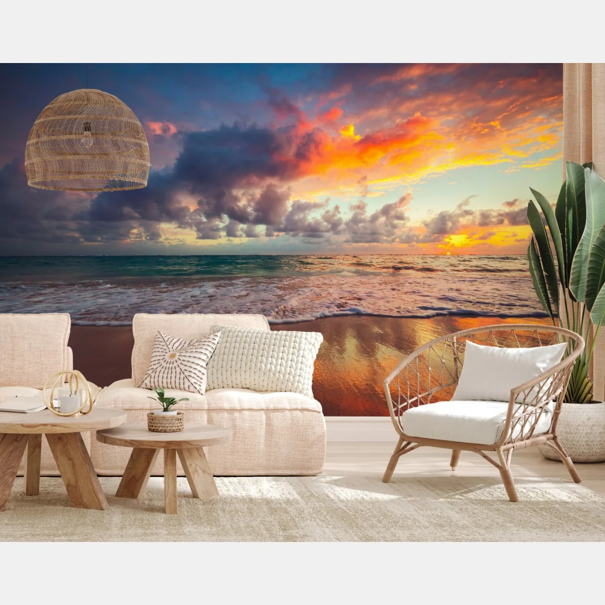 Fototapete Tropischer sonnenaufgang über ruhigem strand