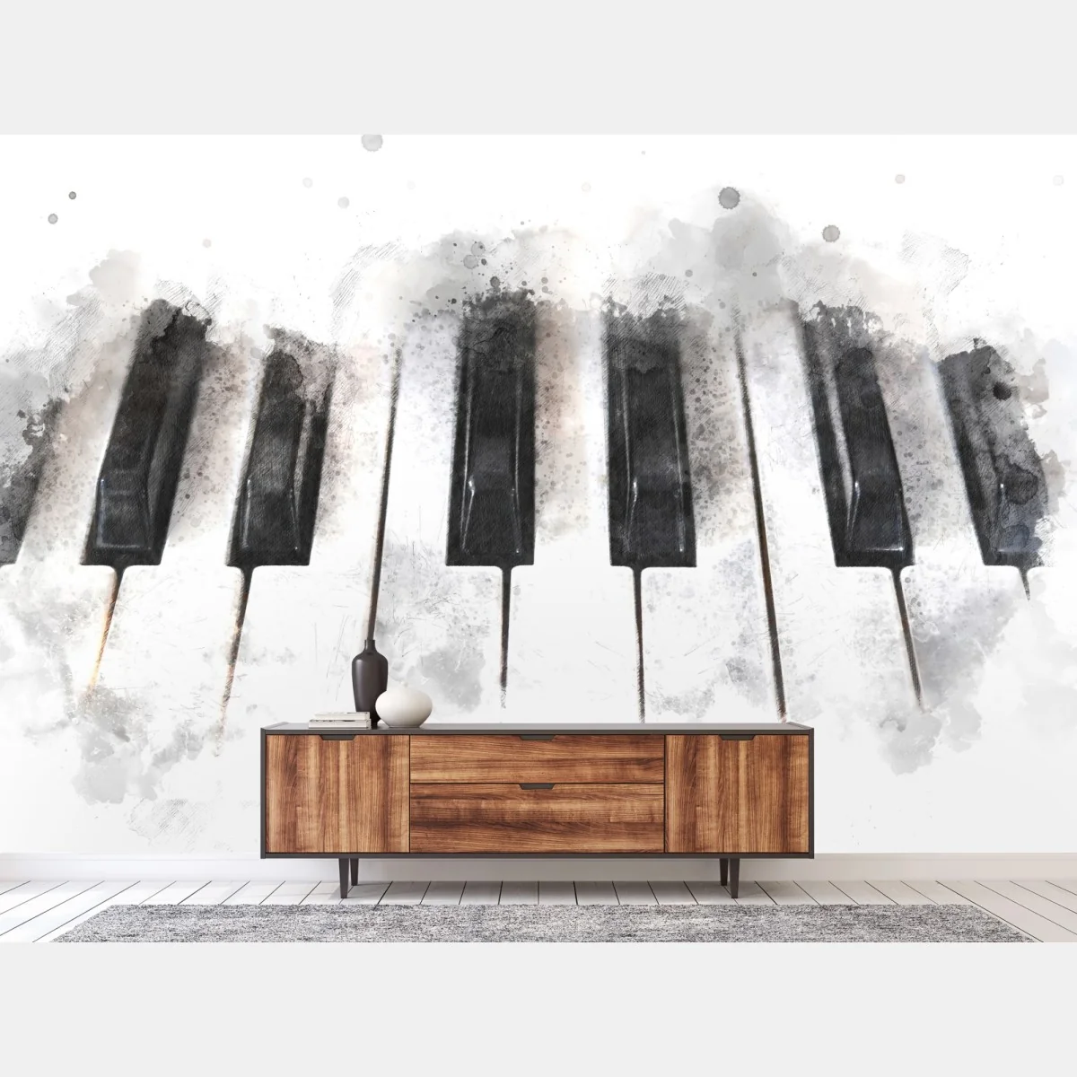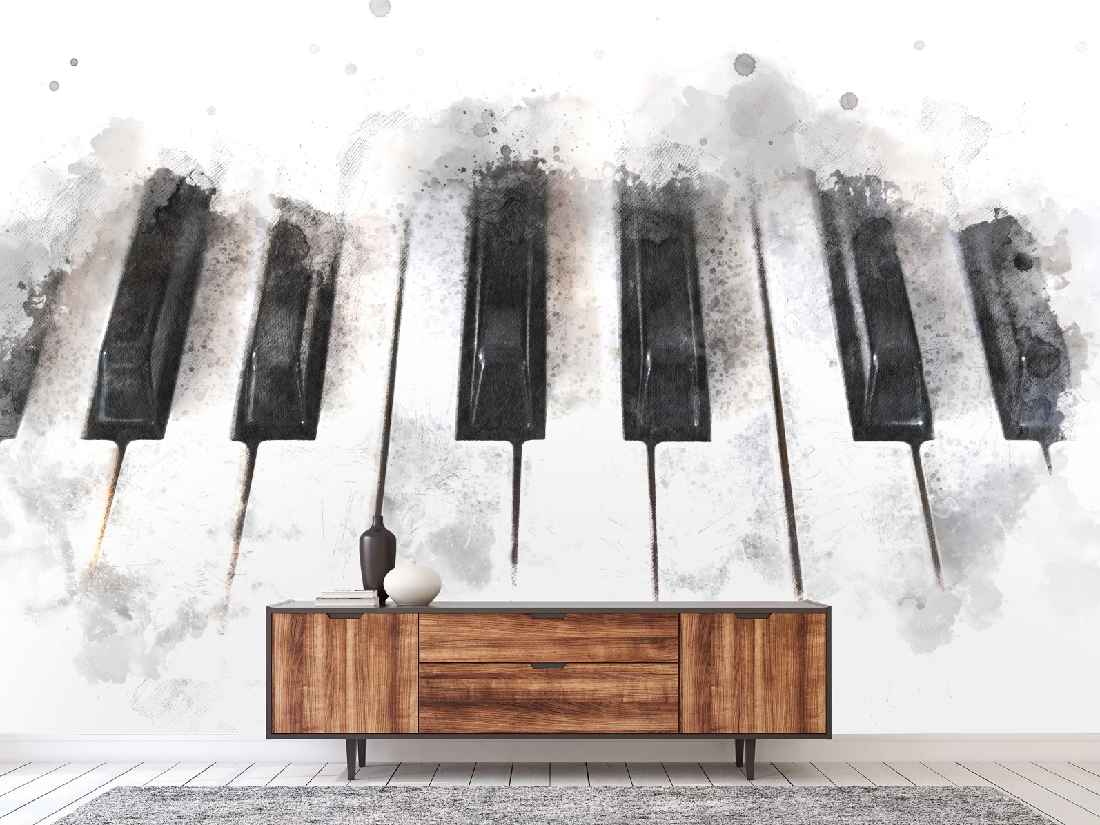 - minimalistisch, aquarell, wohnkultur, kunst, nahaufnahme, schwarz-weiß, musik, instrument, klavier, tasten