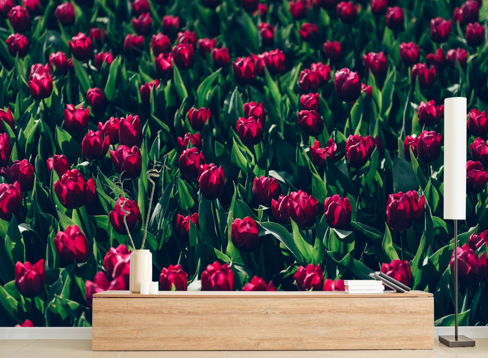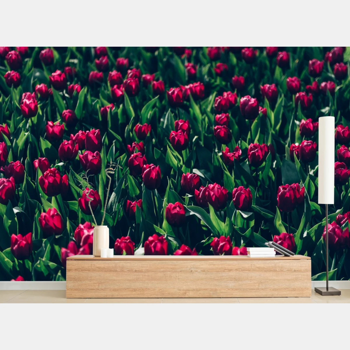 Fototapete Feld roter tulpen