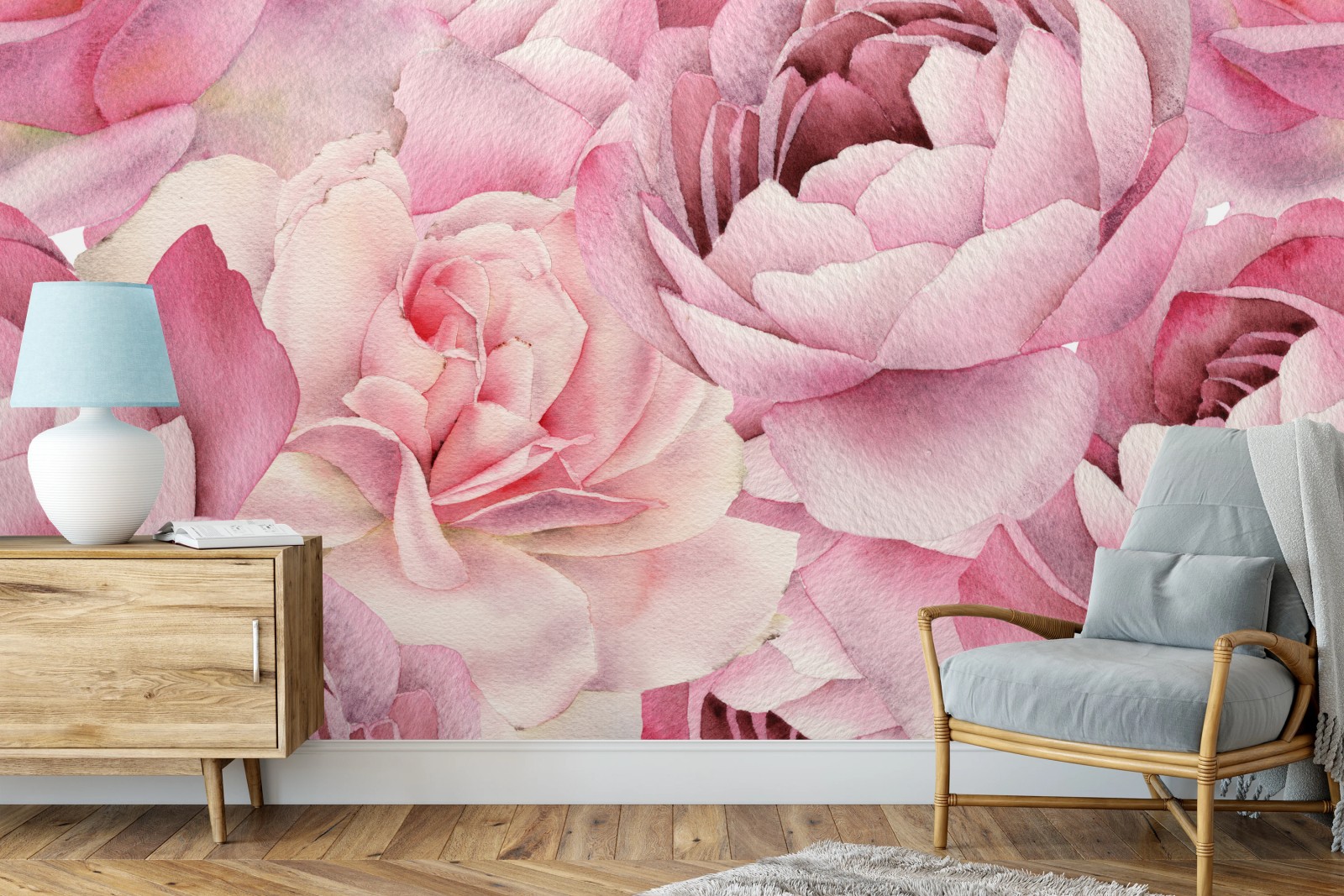 Fototapete Zarte rosa rosen in aquarell