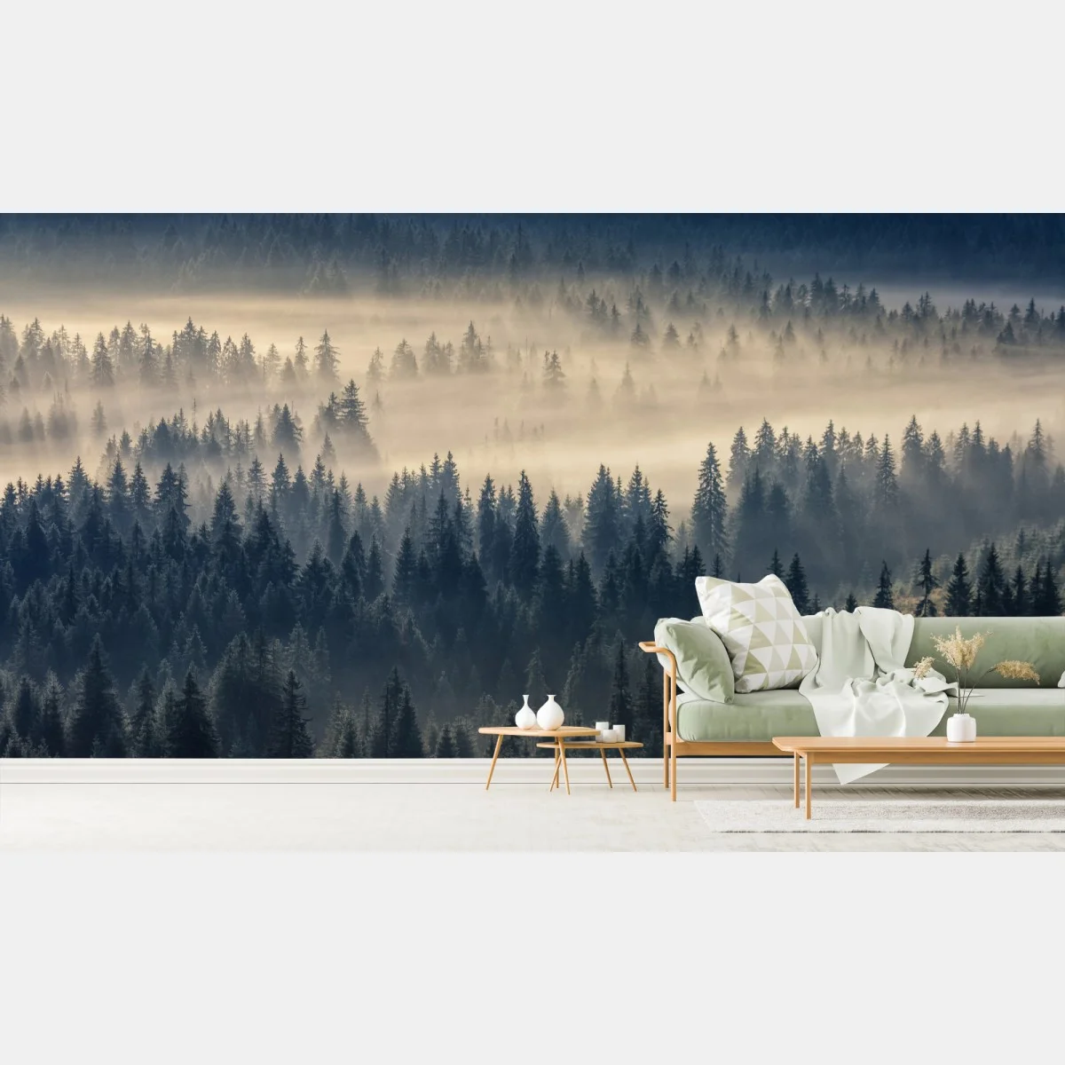 Fototapete Nebliges fichtental im dämmerlicht