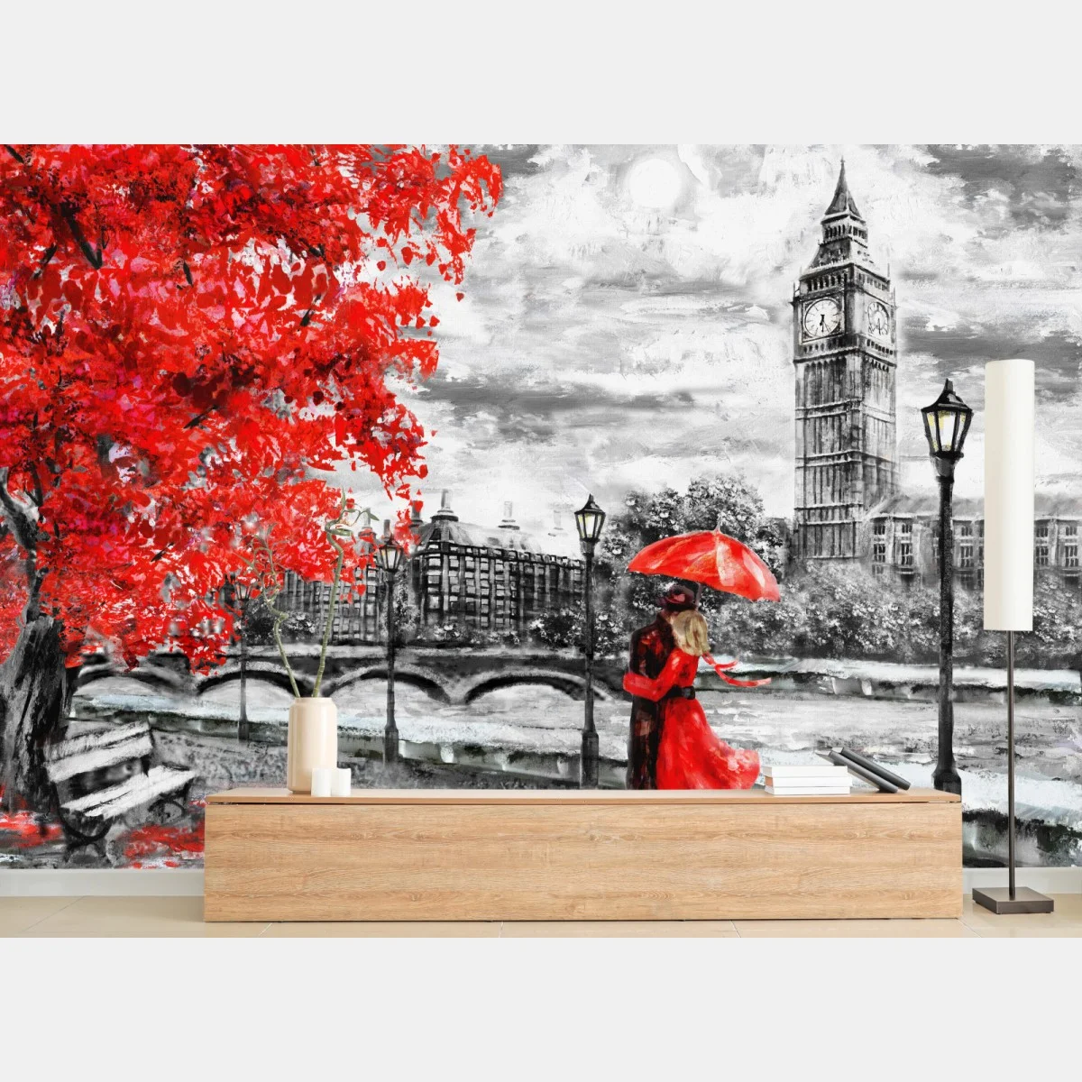 Fototapete Romantischer regnerischer abend in London