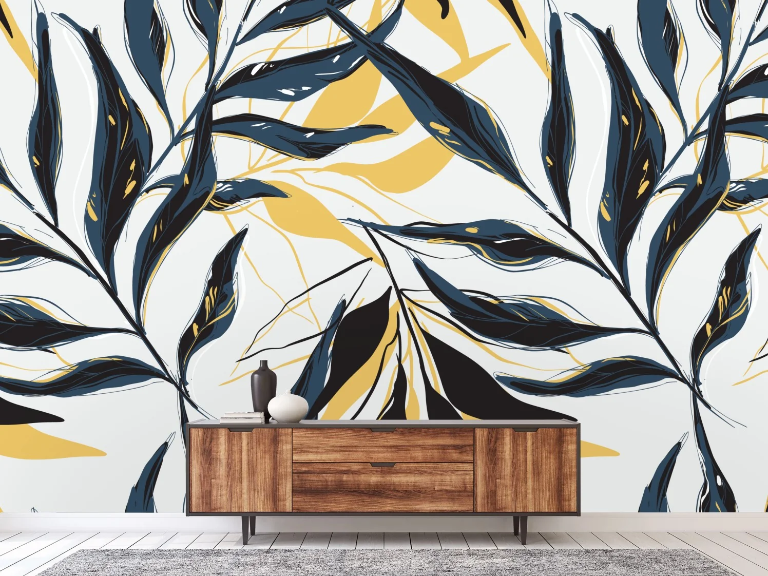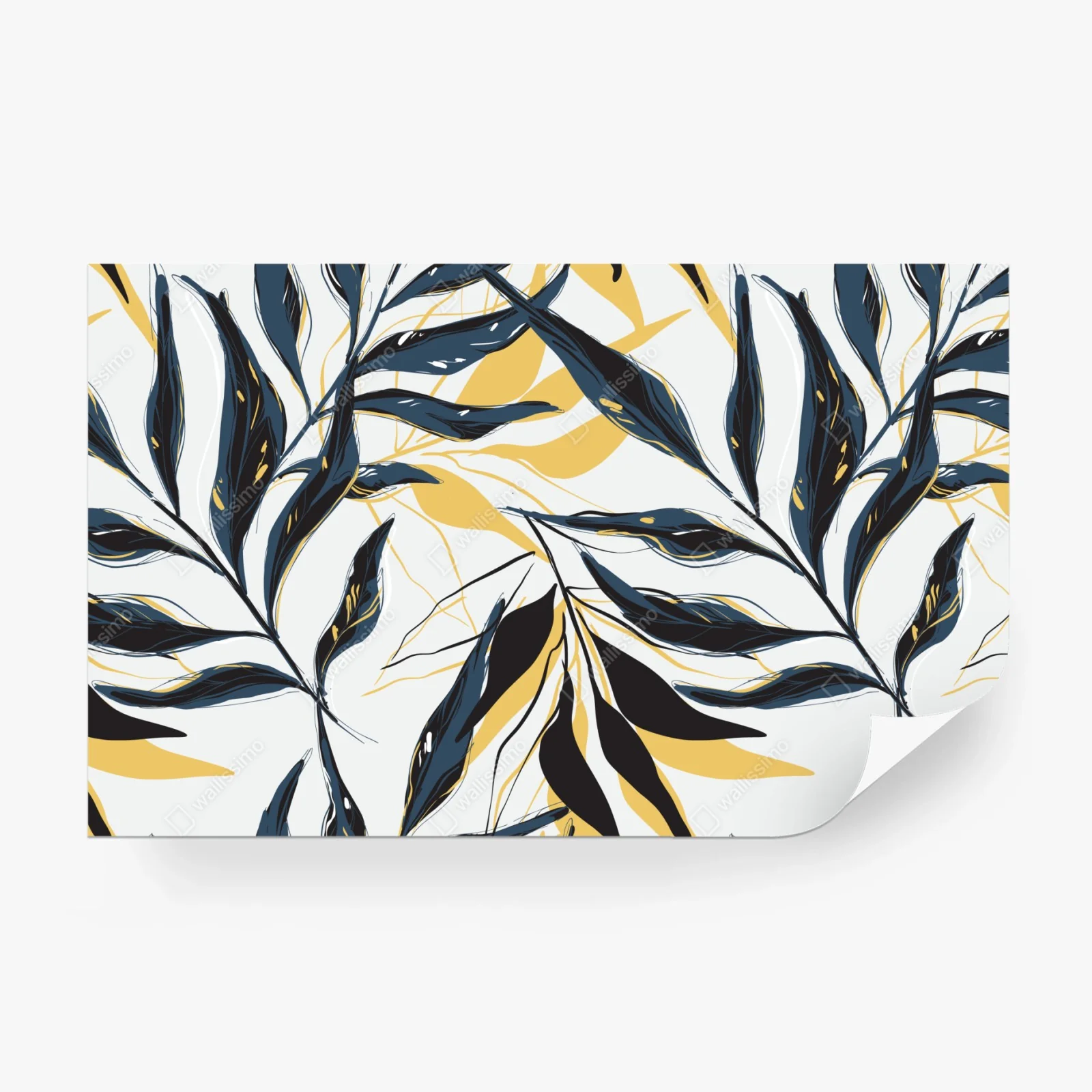 Fototapete Marineblaue und goldene botanische blattkomposition