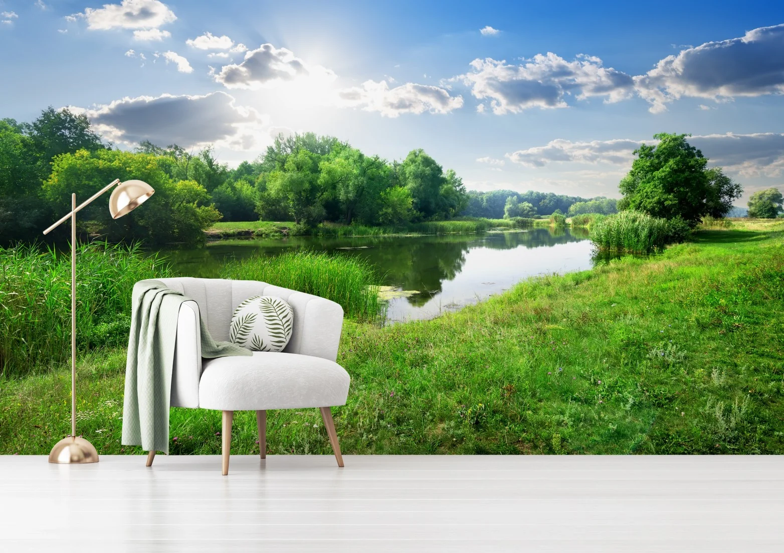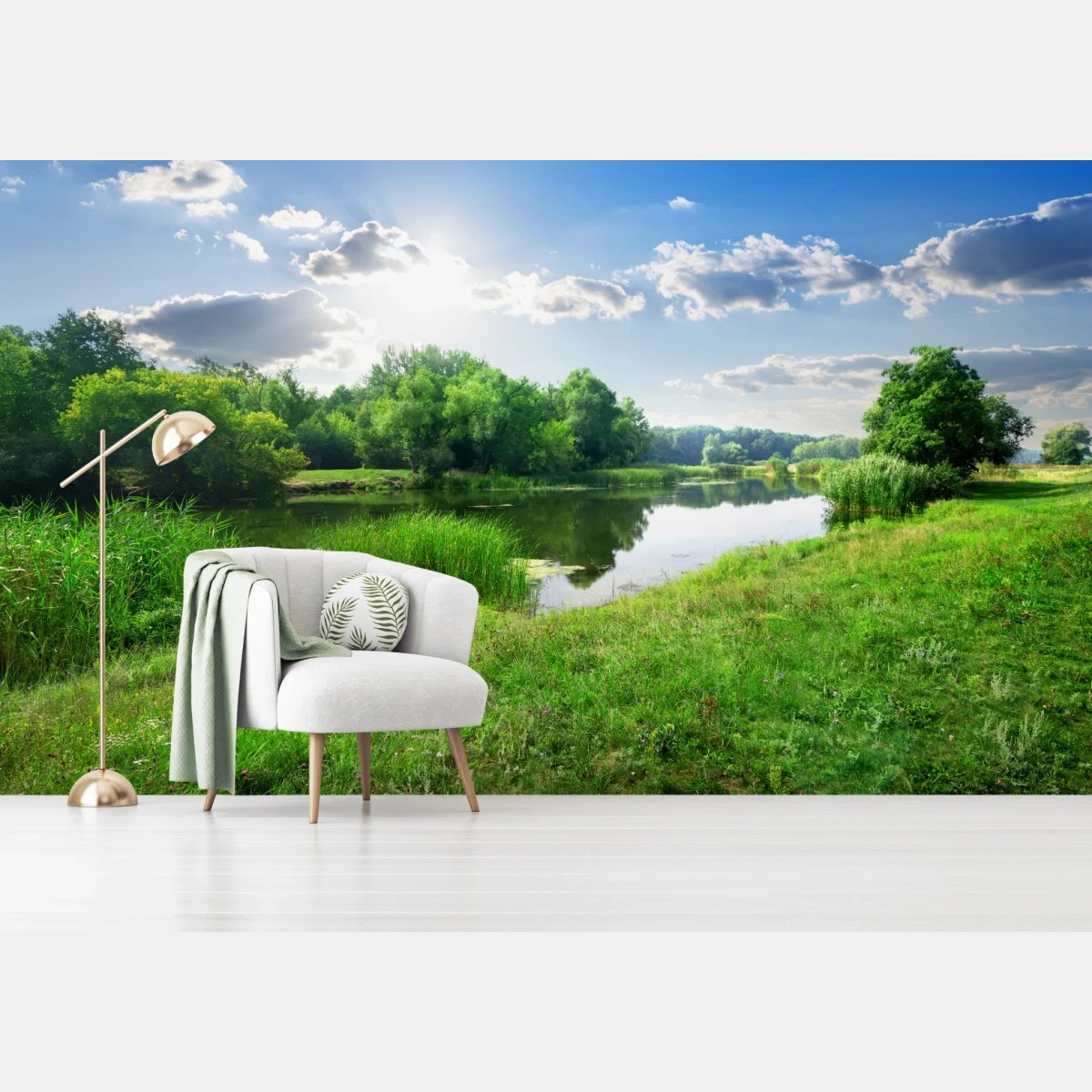 Fototapete Sonnige wiese am fluss