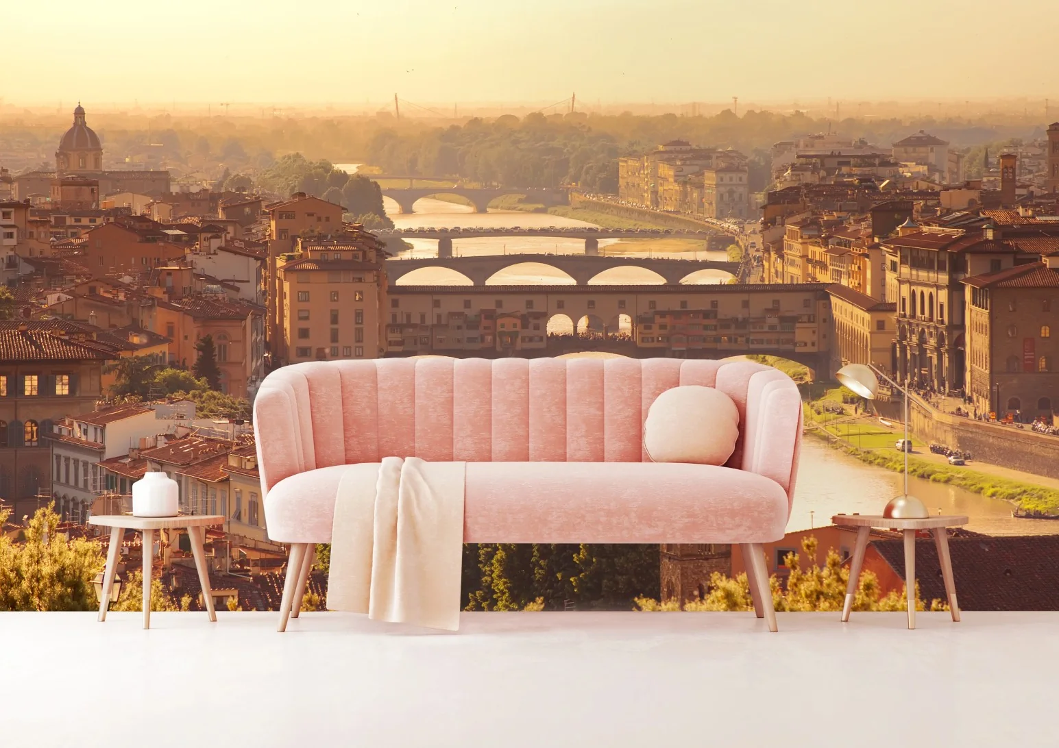 Fototapete Goldener sonnenuntergang über Ponte Vecchio, Florenz