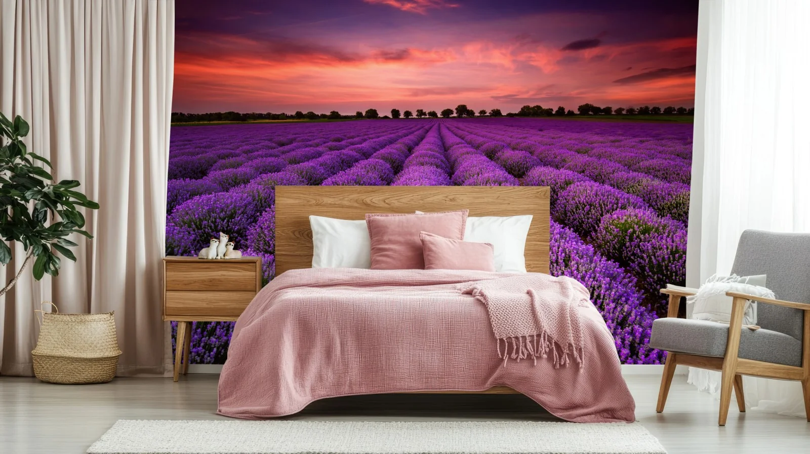 Fototapete Lavendelfeld bei sonnenuntergang