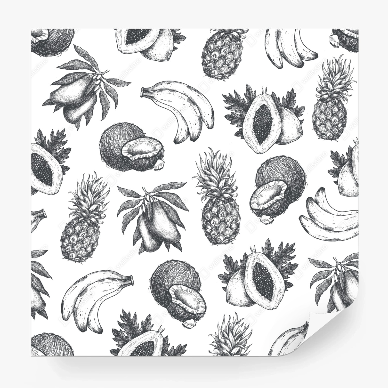 Fototapete Handgezeichnetes muster tropischer früchte