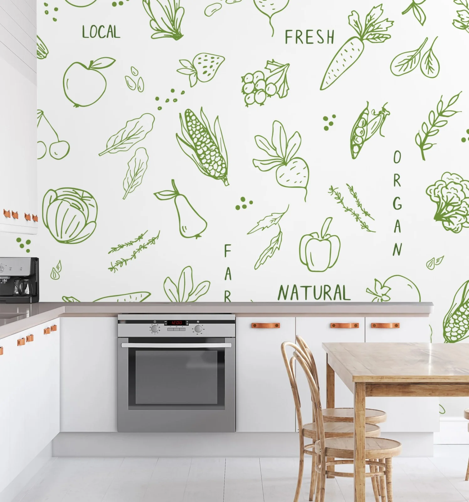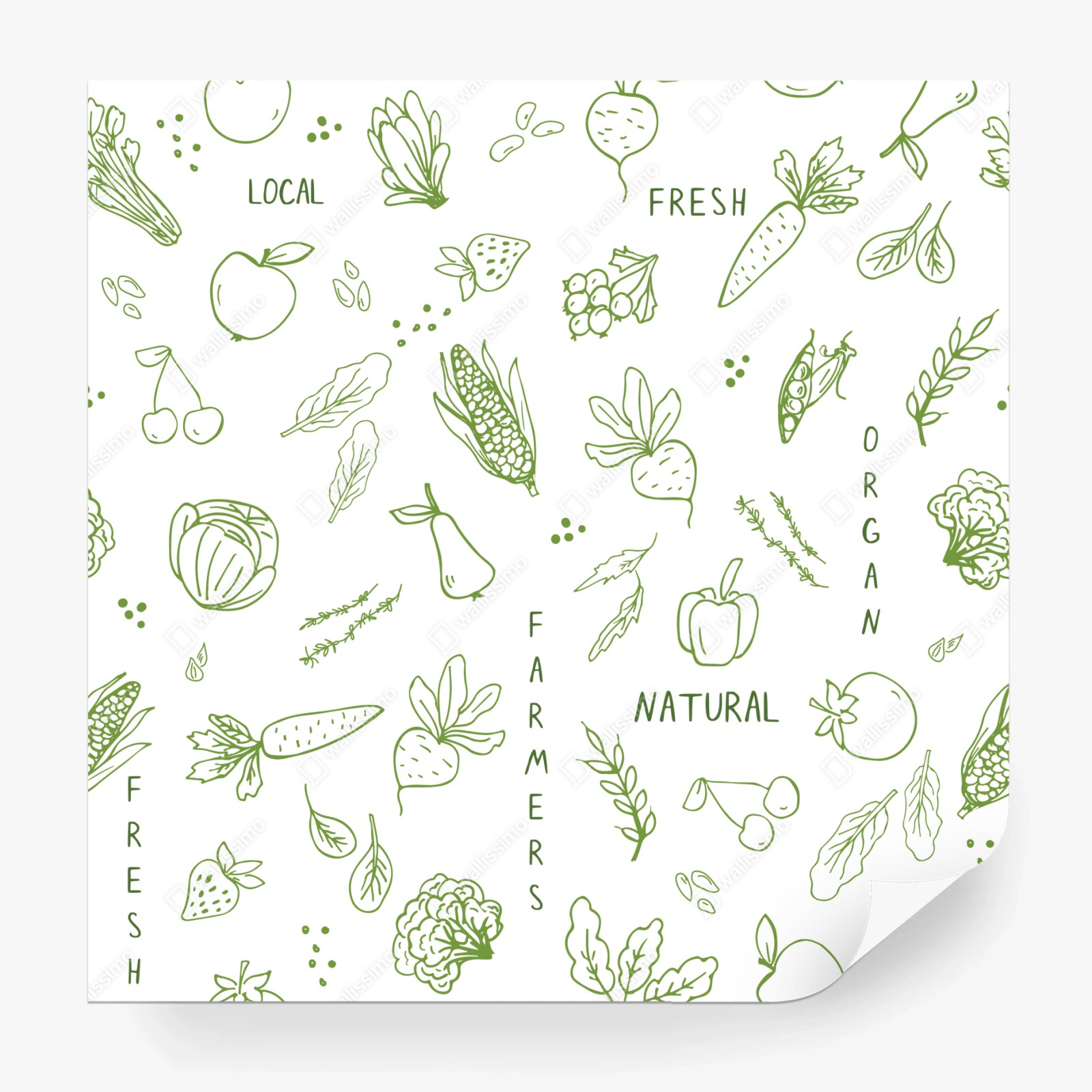 Fototapete Handgezeichnetes gemüse- und obstmuster