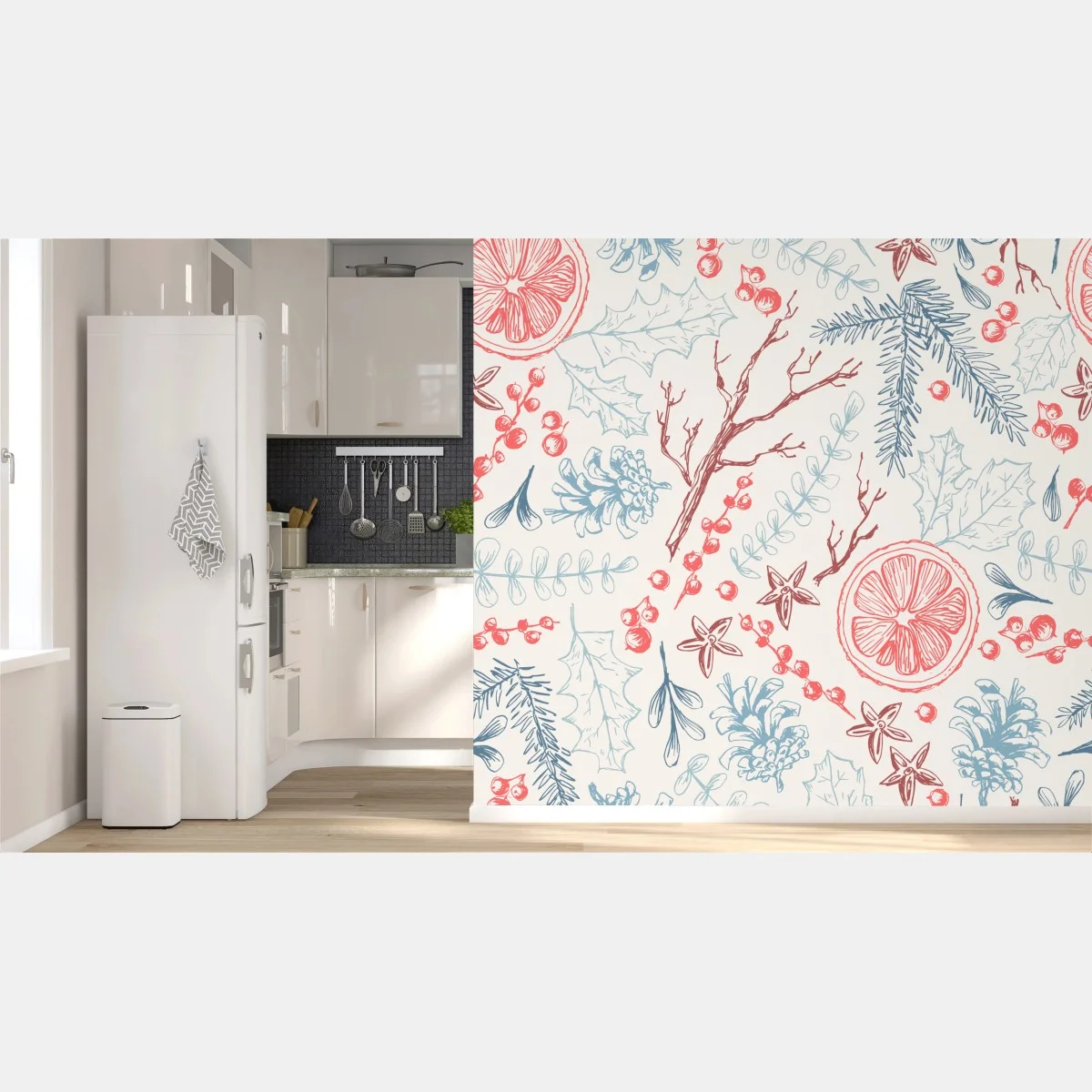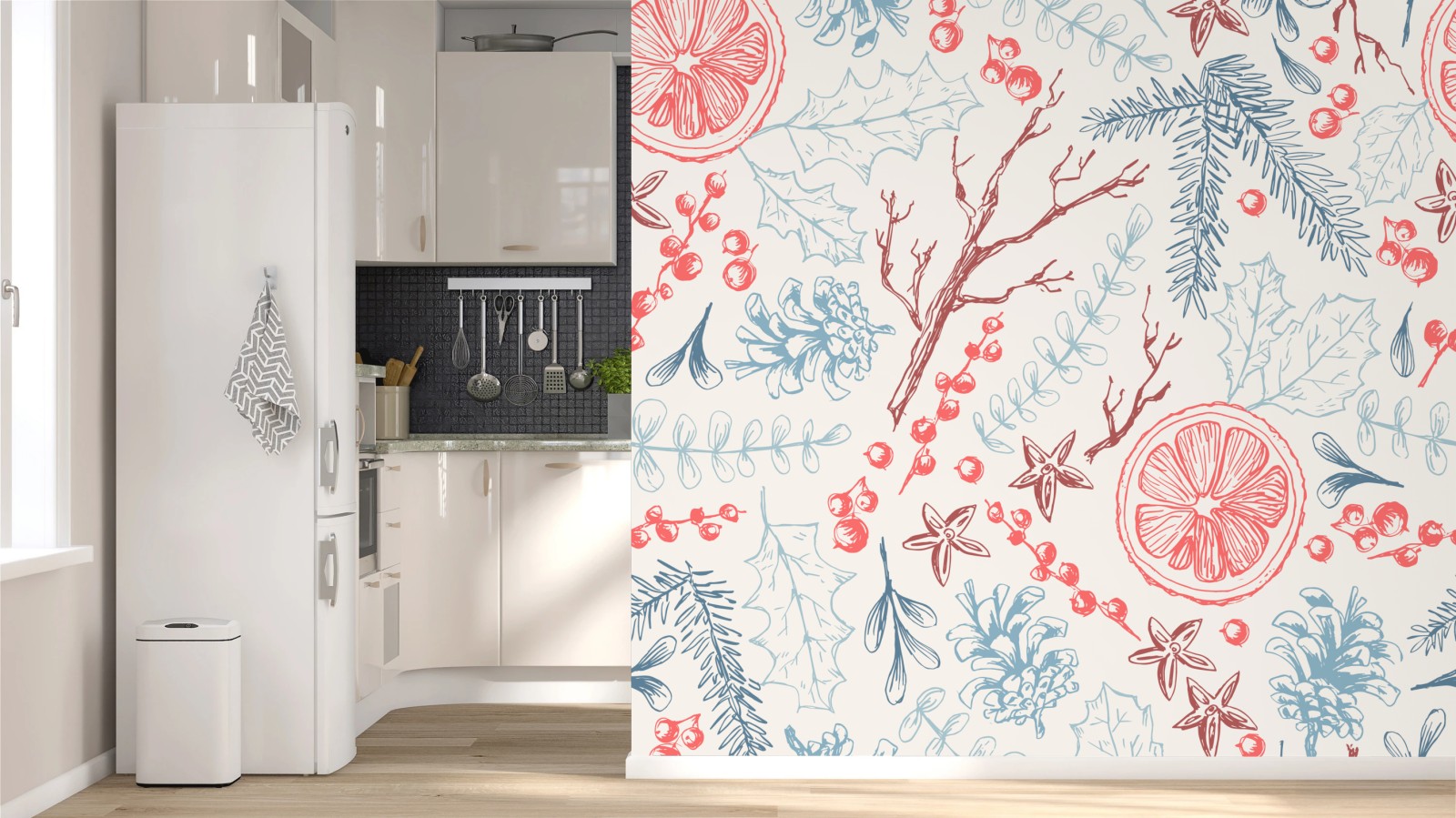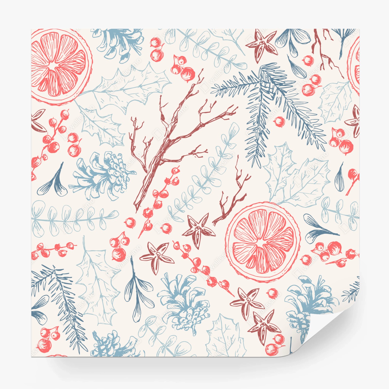 Fototapete Handgezeichnetes winterliches botanisches muster