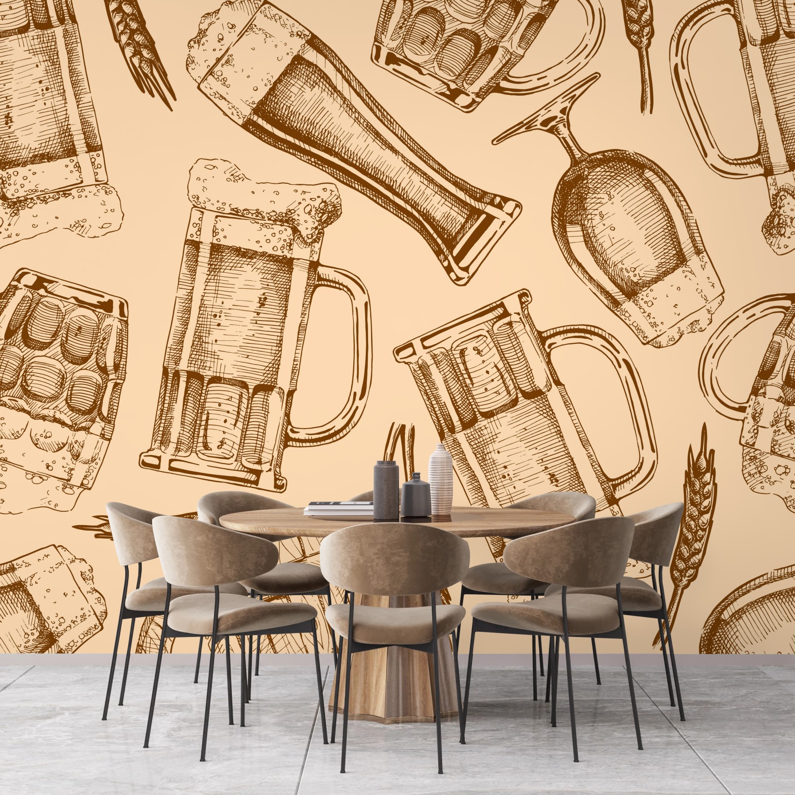 - nahtloses muster, retro, bär, bier, brauerei, skizze, bierkrüge, weizen, bierglas, nostalgisch