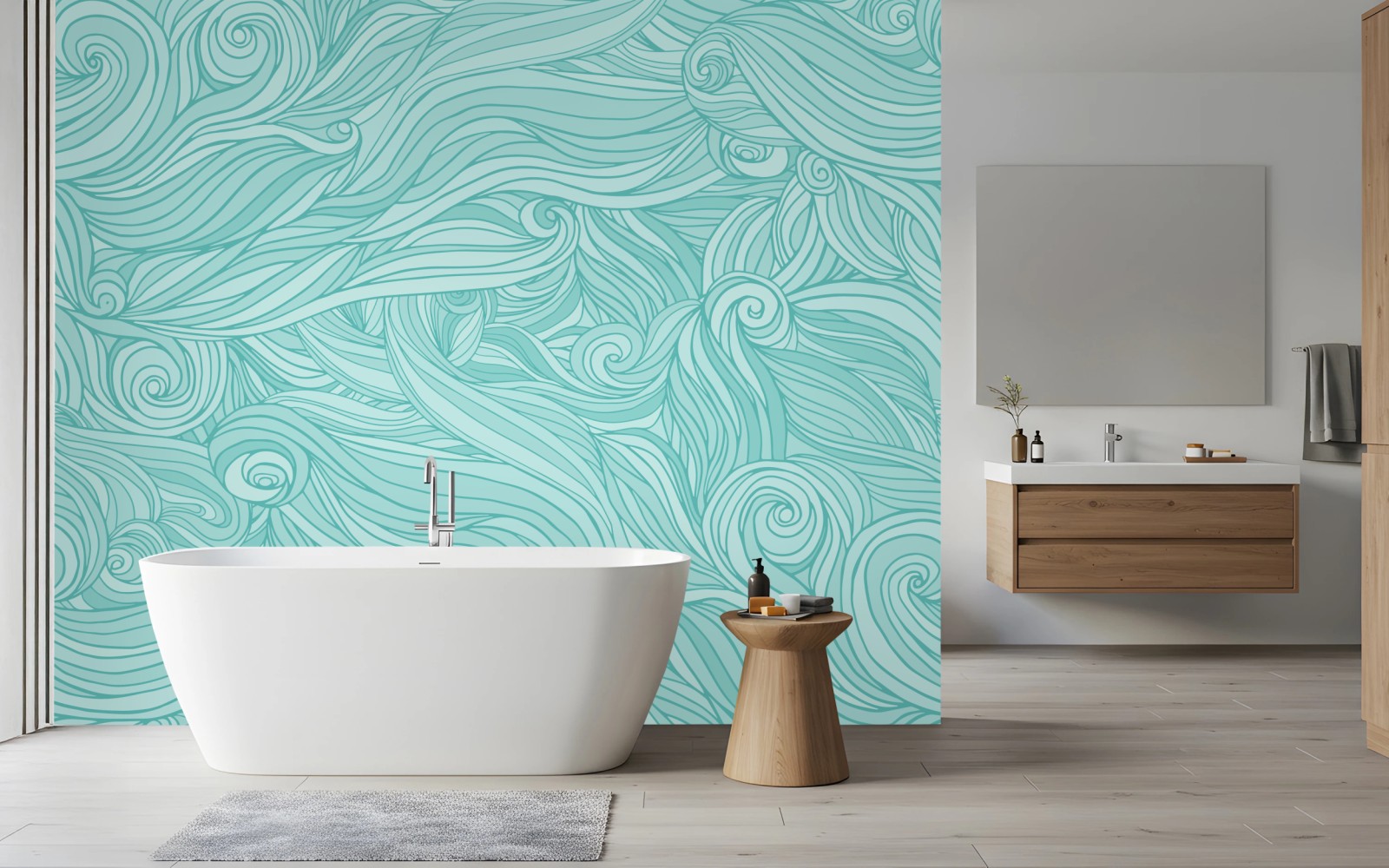 - türkis, minimalistisch, hintergrund, abstrakt, wellen, muster, nahtlos, beruhigend, deko, spiralen