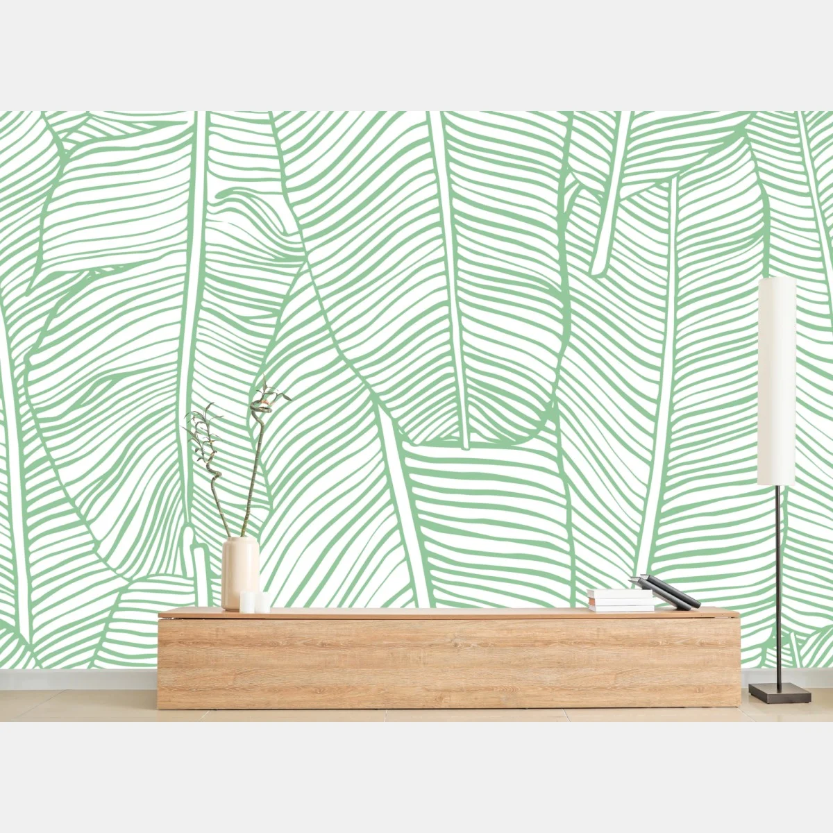 - minimalistisch, botanisch, natur, tropisch, grün, muster, bananenblatt, wanddekoration, pflanzen, mint