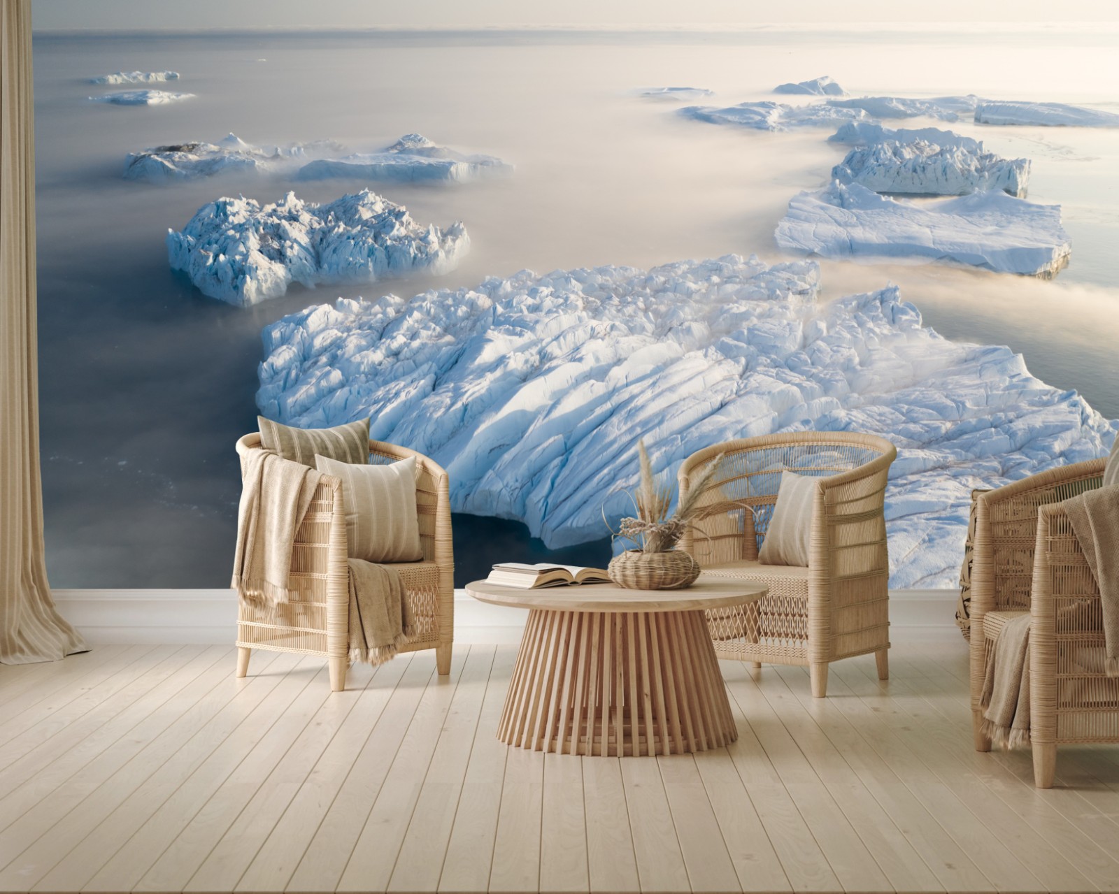 - minimalistisch, ozean, nebel, ruhe, winter, gletscher, arktis, eisberg, polare landschaft, eisscholle