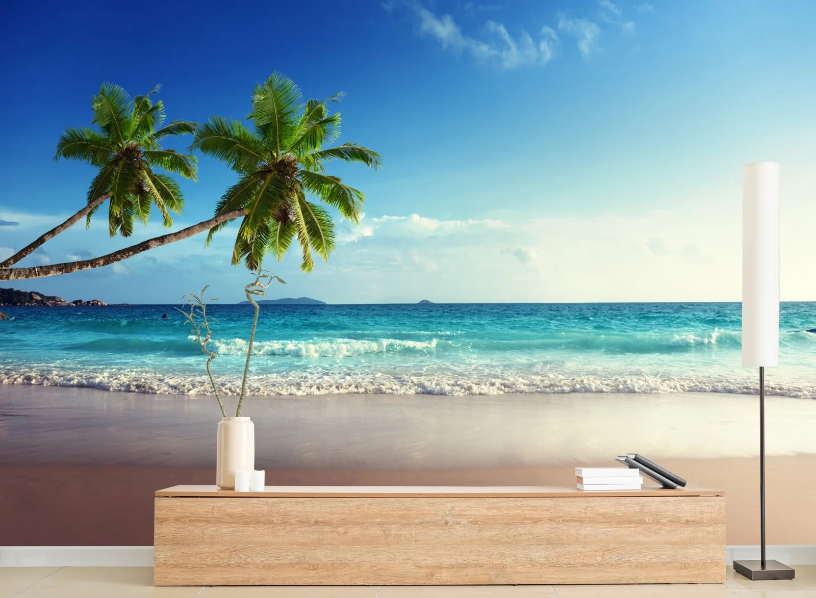 Fototapete Tropischer Karibikstrand bei sonnenuntergang