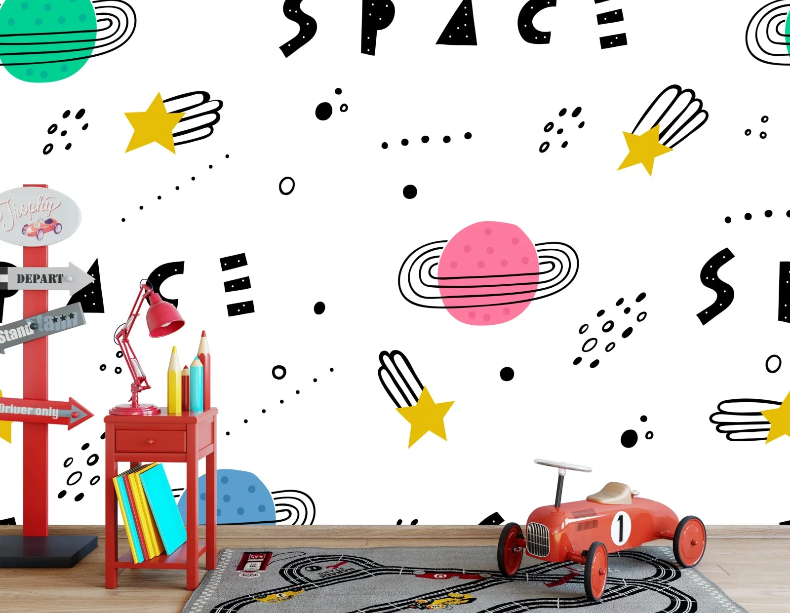 Fototapete Verspieltes weltraummuster mit planeten