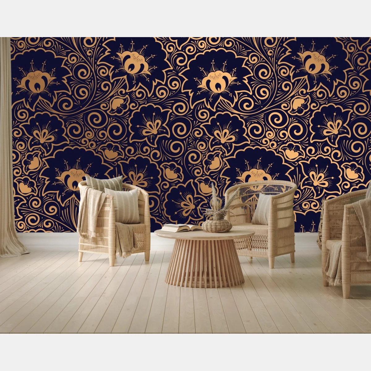 Fototapete Luxuriöses goldenes blumenmuster auf dunklem hintergrund