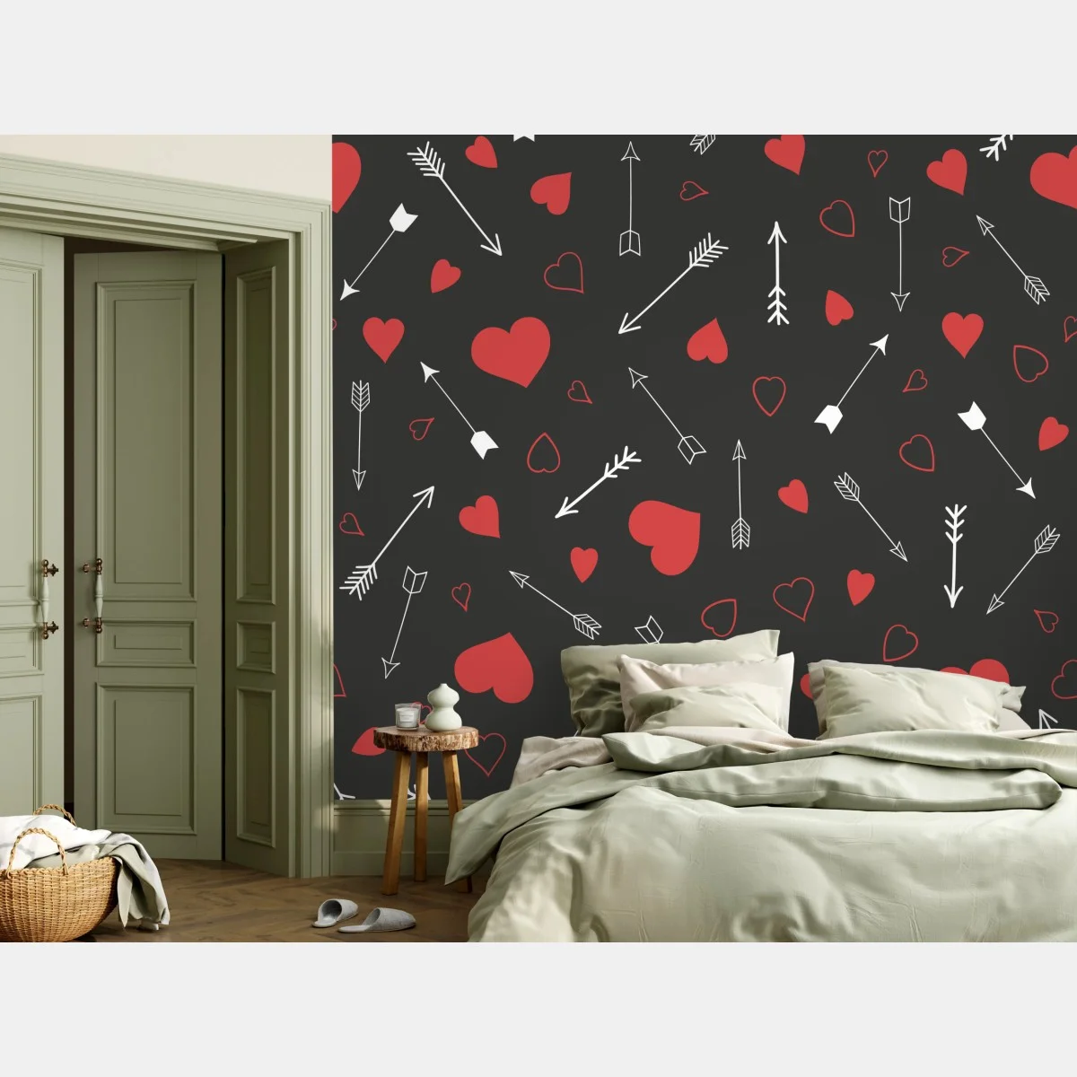 - vektor, hintergrund, muster, nahtlos, rot, liebe, romantisch, valentinstag, herzen, pfeile