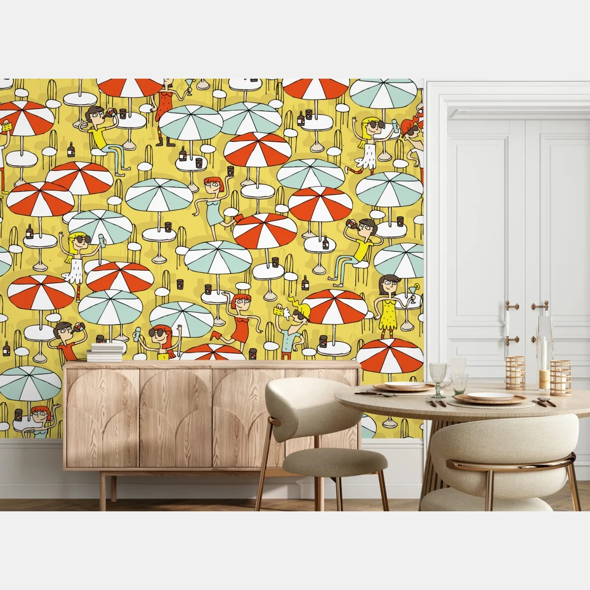 Fototapete Sonniges strandmuster mit schirmen