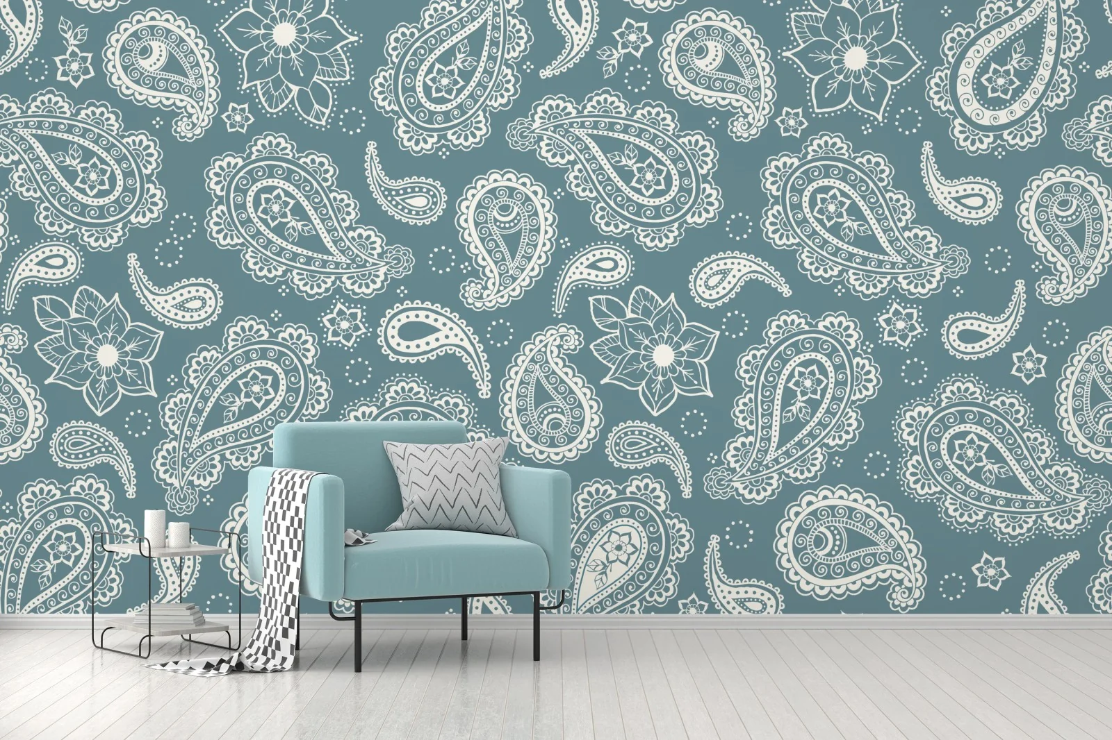 Fototapete Türkis paisley muster mit blumendetails
