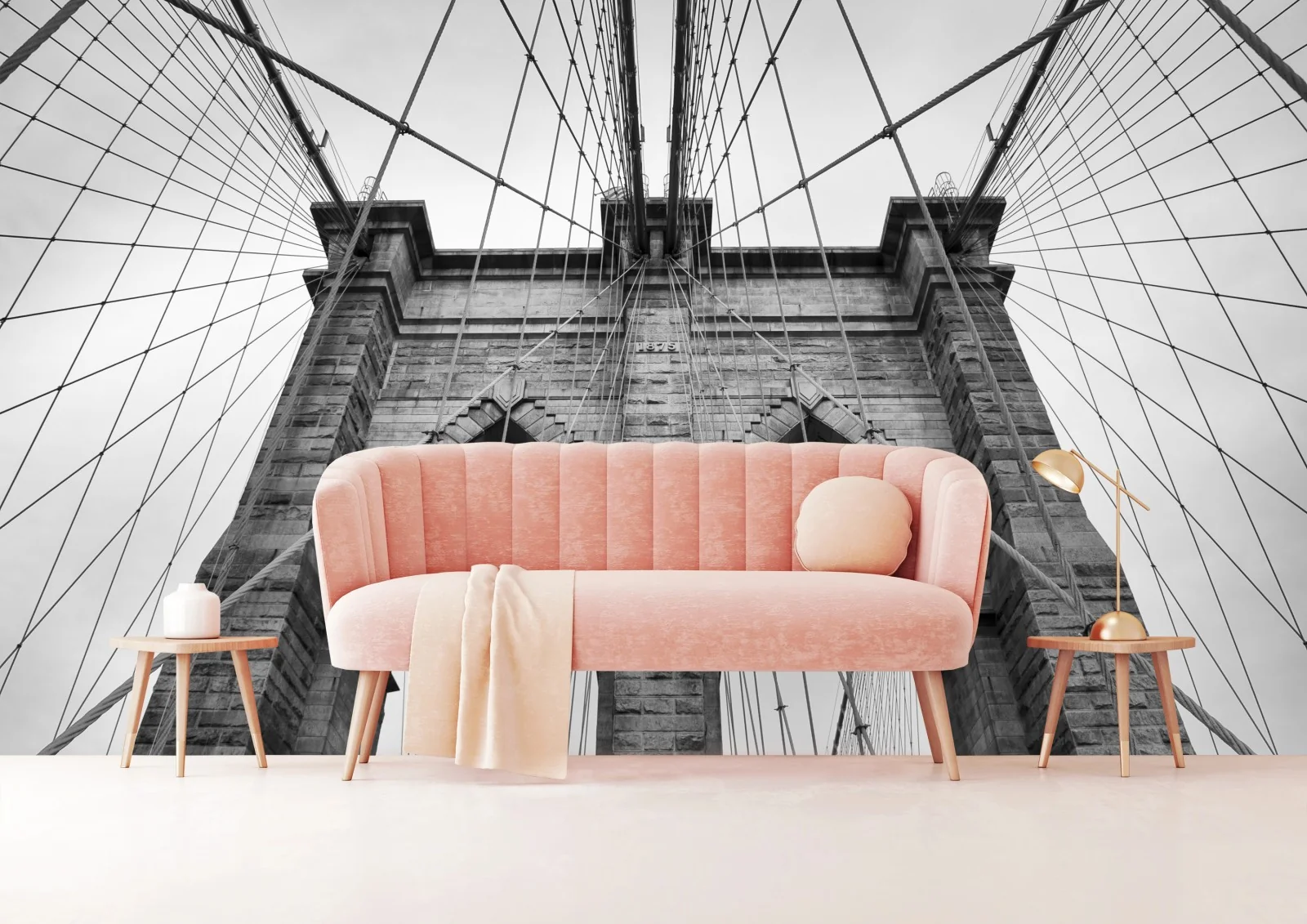 Fototapete Monochrome hängebrücke aus grafischer perspektive