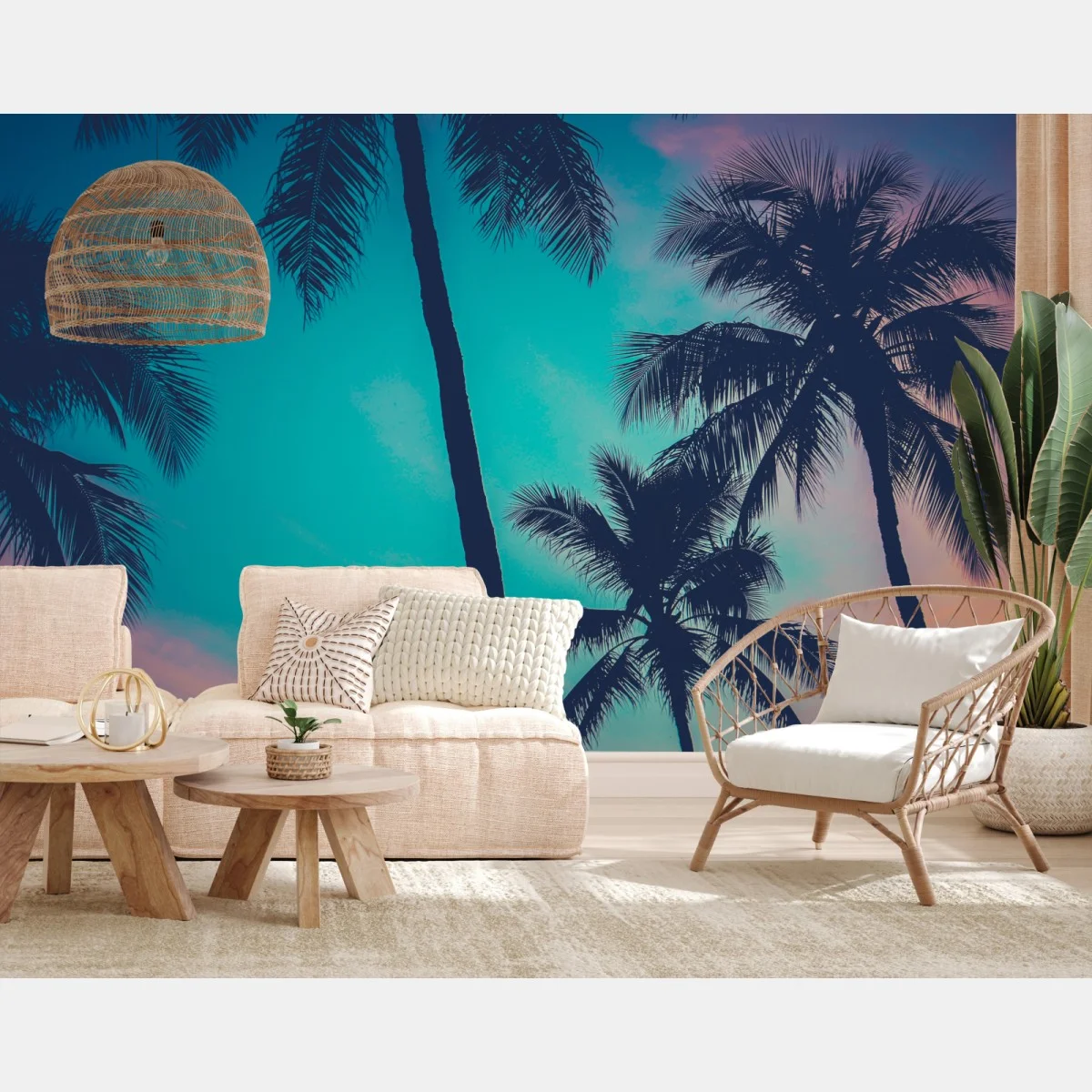 Fototapete Vintage palmen auf Hawaii bei sonnenuntergang