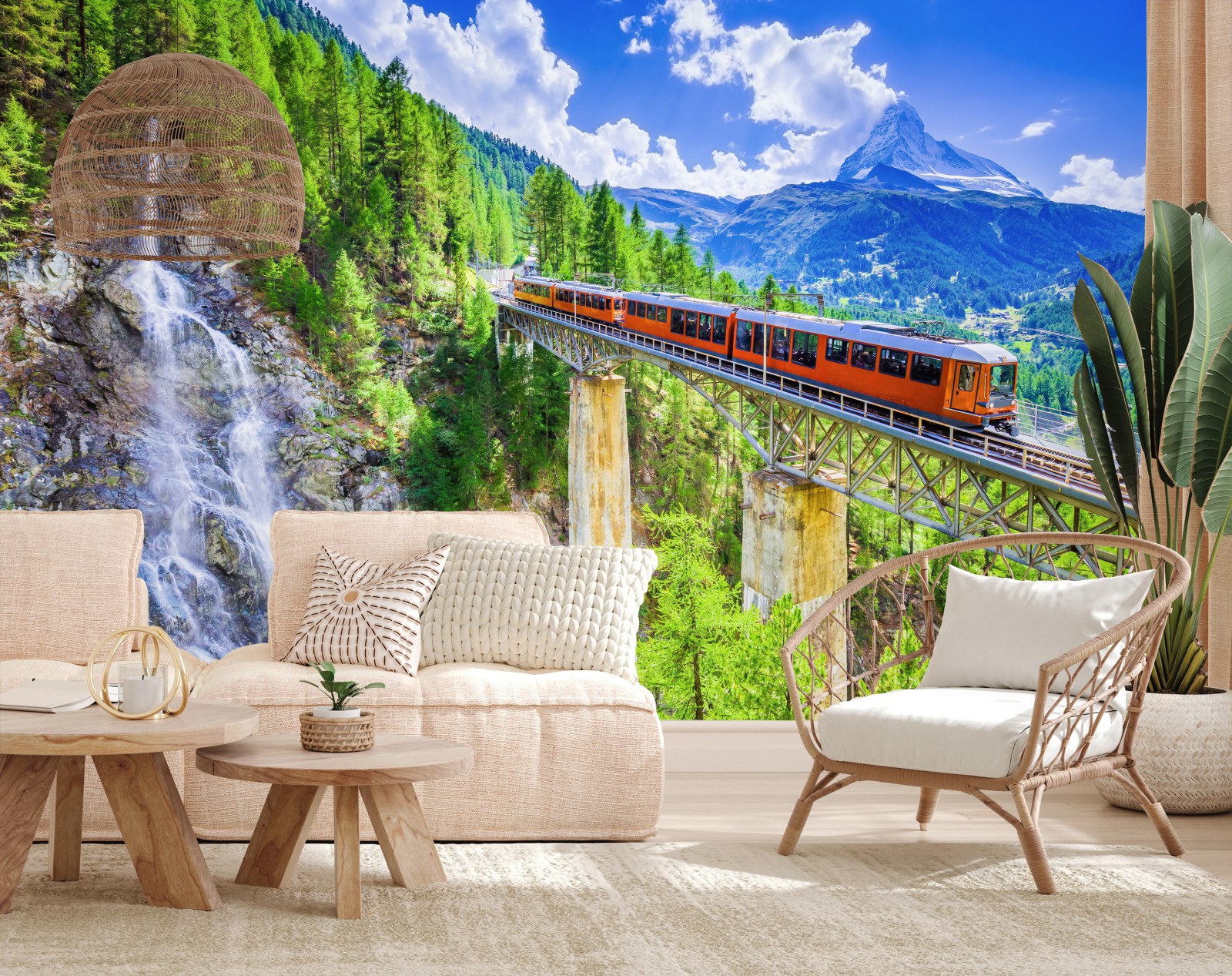 Fototapete Gornergrat zug auf alpenbrücke mit Matterhorn
