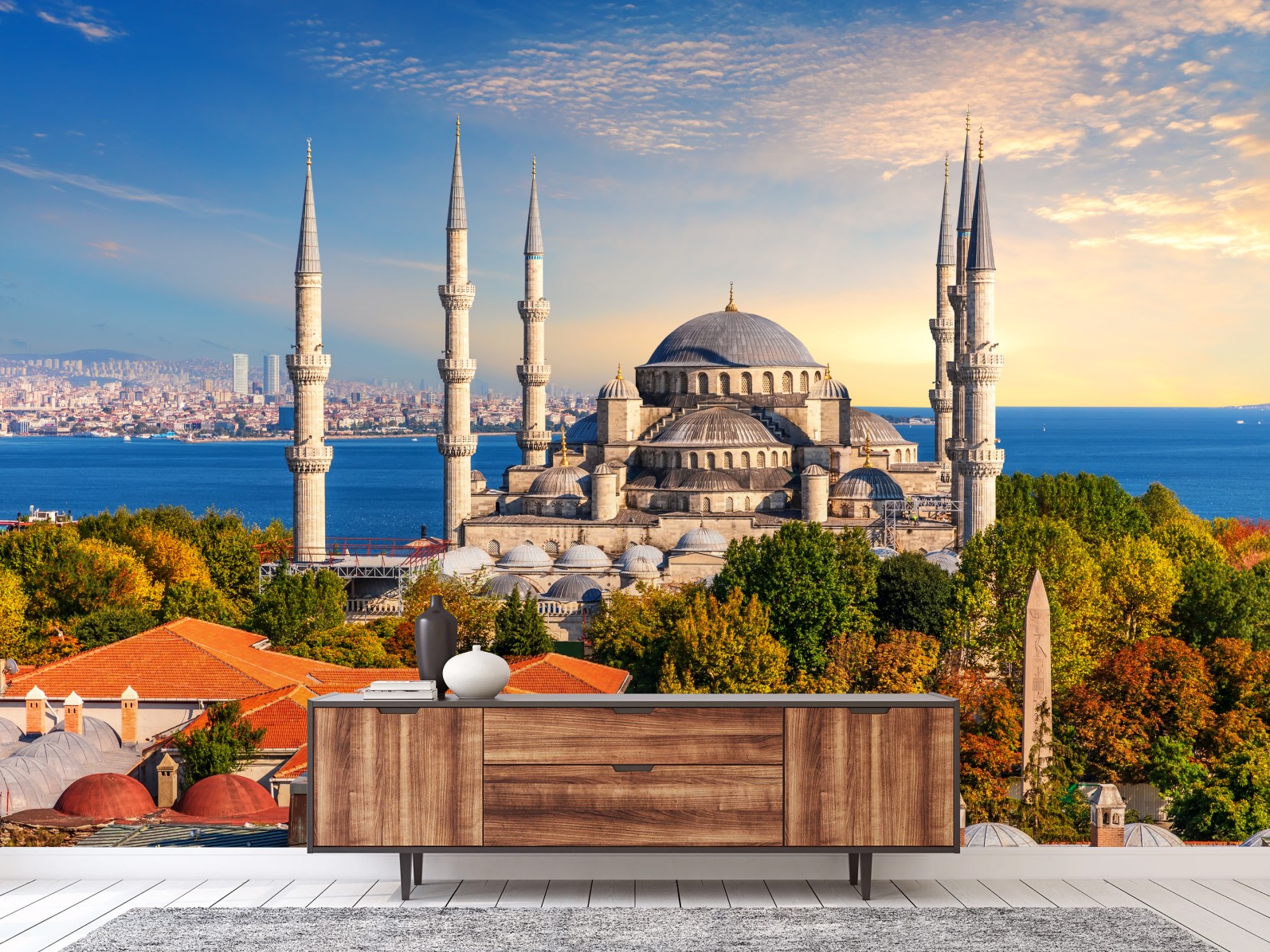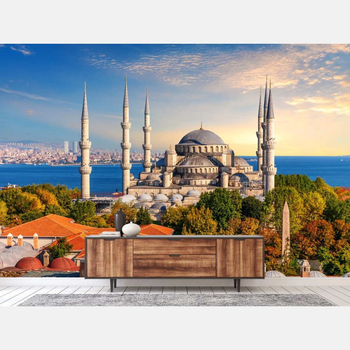 Fototapete Istanbul mit der Blauen Moschee bei Sonnenuntergang