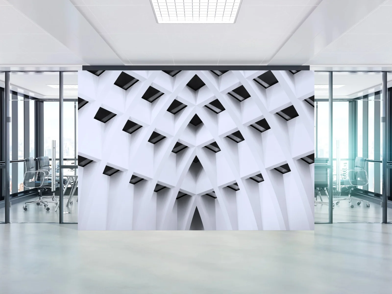 - moderne architektur, minimalistisches interieur, monochrom, innenraumgestaltung, architekturmuster, geometrisches design, gewölbte decke, abstrakte struktur, repetitives muster, strukturelle geometrie