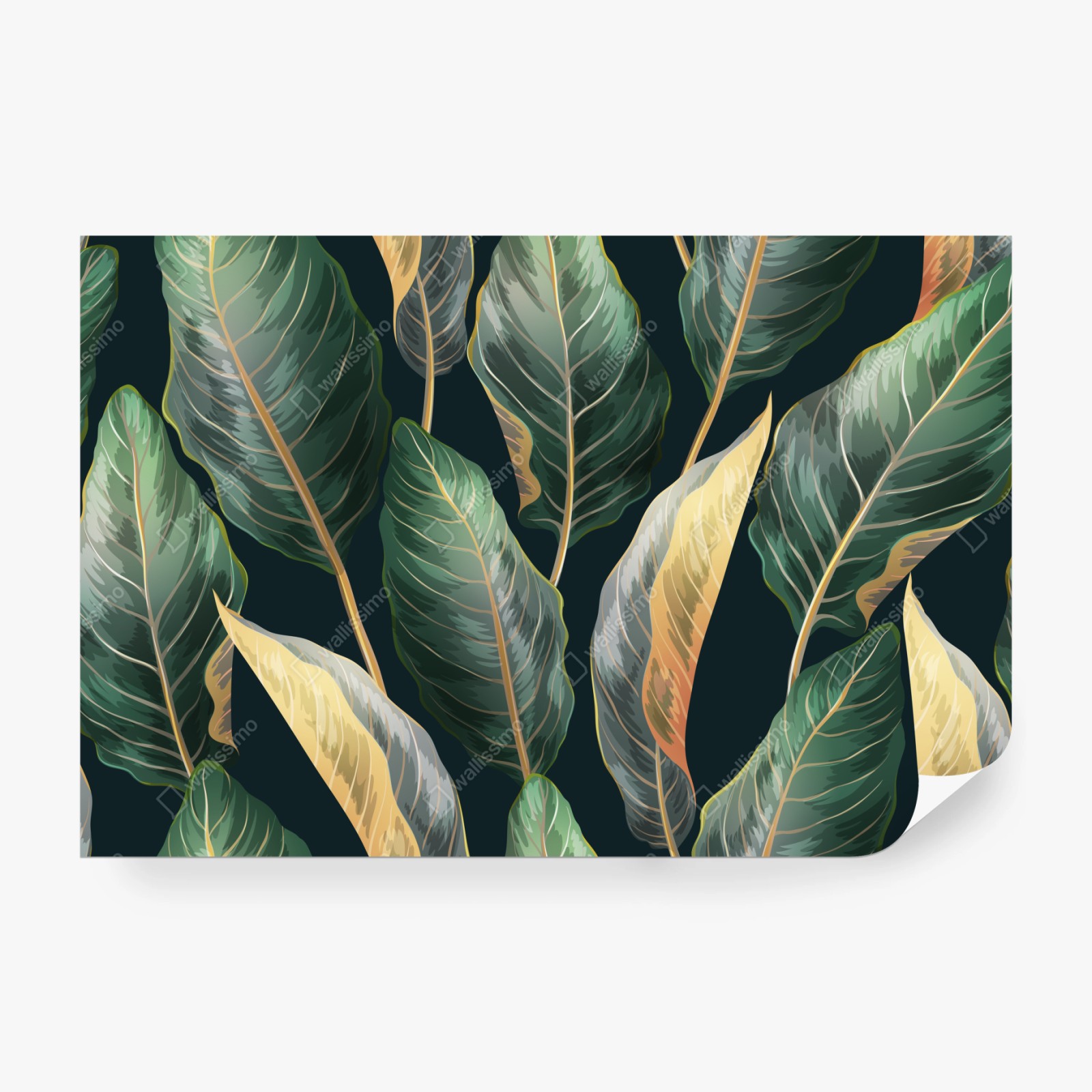 - botanisch, nahtloses muster, tropische blätter, grünes laub, vektorgrafik, exotische pflanzen, dschungel print, blatttapete, naturdeko, retro tropisch