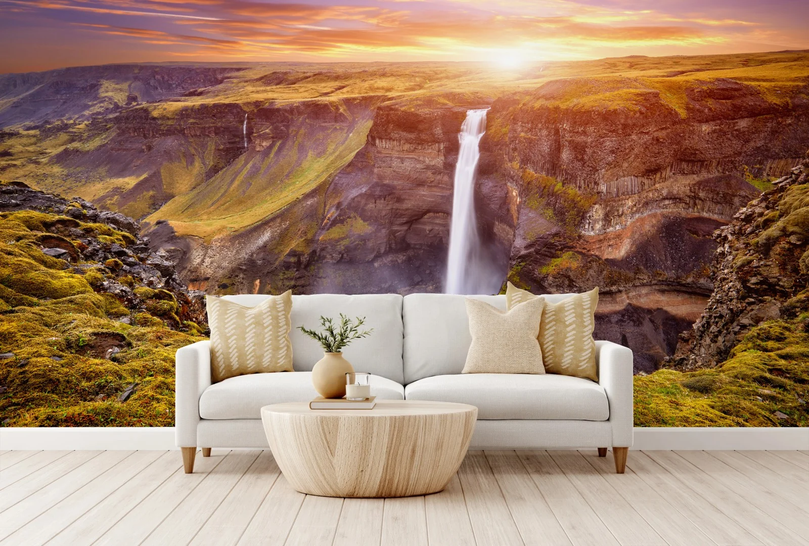 Fototapete Haifoss wasserfall bei sonnenuntergang