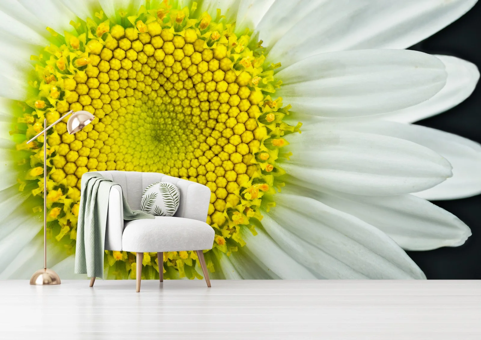 - makro, natur, muster, gelb, weiß, gänseblümchen, blume, nahaufnahme, botanik, spirale