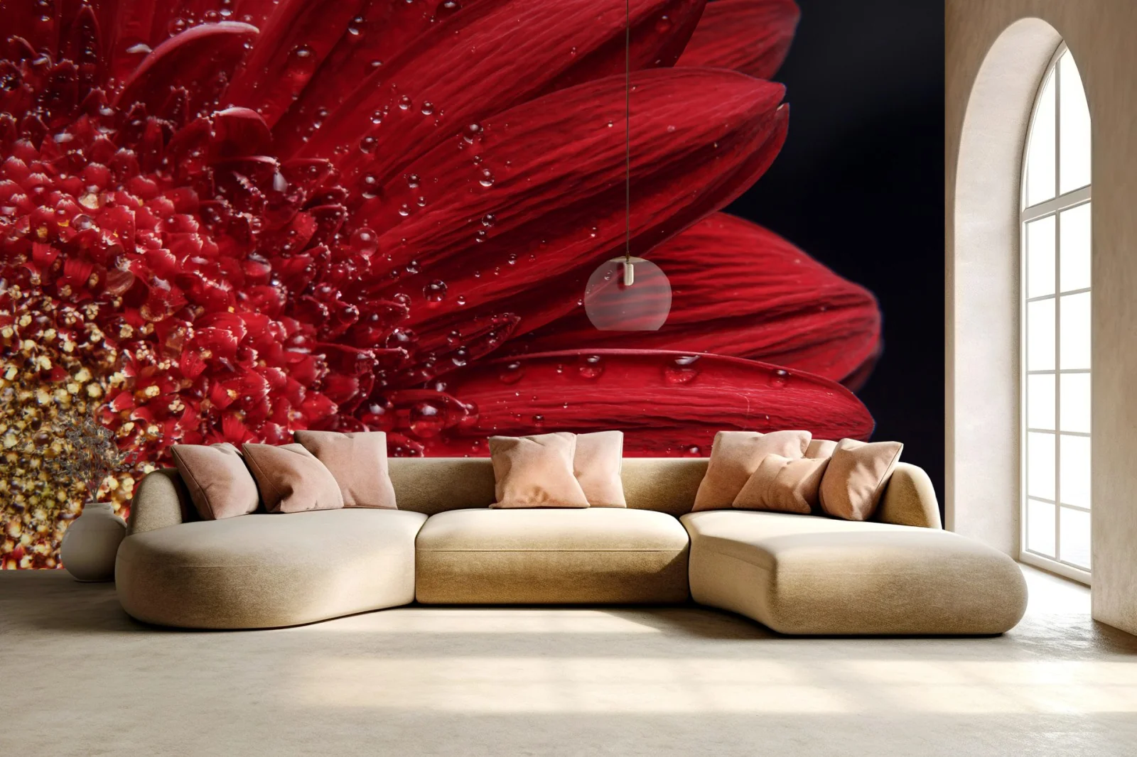 - makro, natur, sommer, blume, wassertropfen, nahaufnahme, blütenblätter, frühling, gerbera, rote gerbera