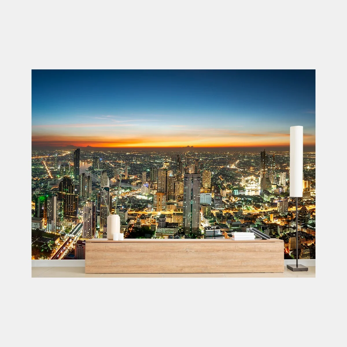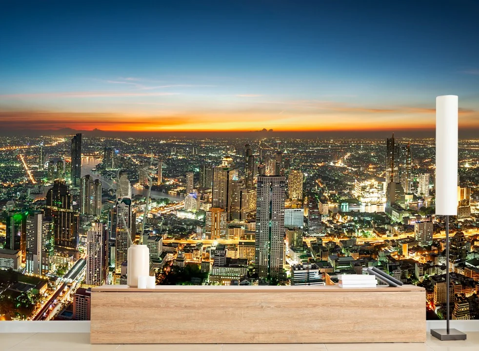 Fototapete Panorama von Bangkok bei dämmerung