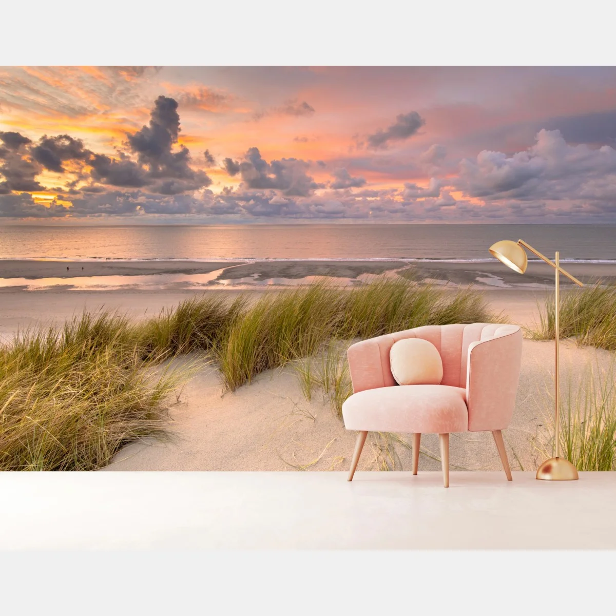 Fototapete Sonnenuntergang über dünen in Zeeland