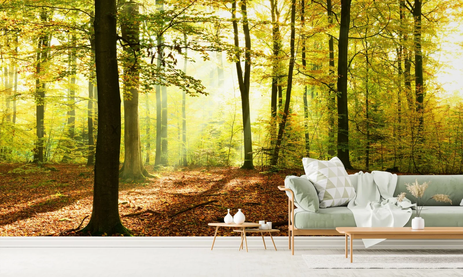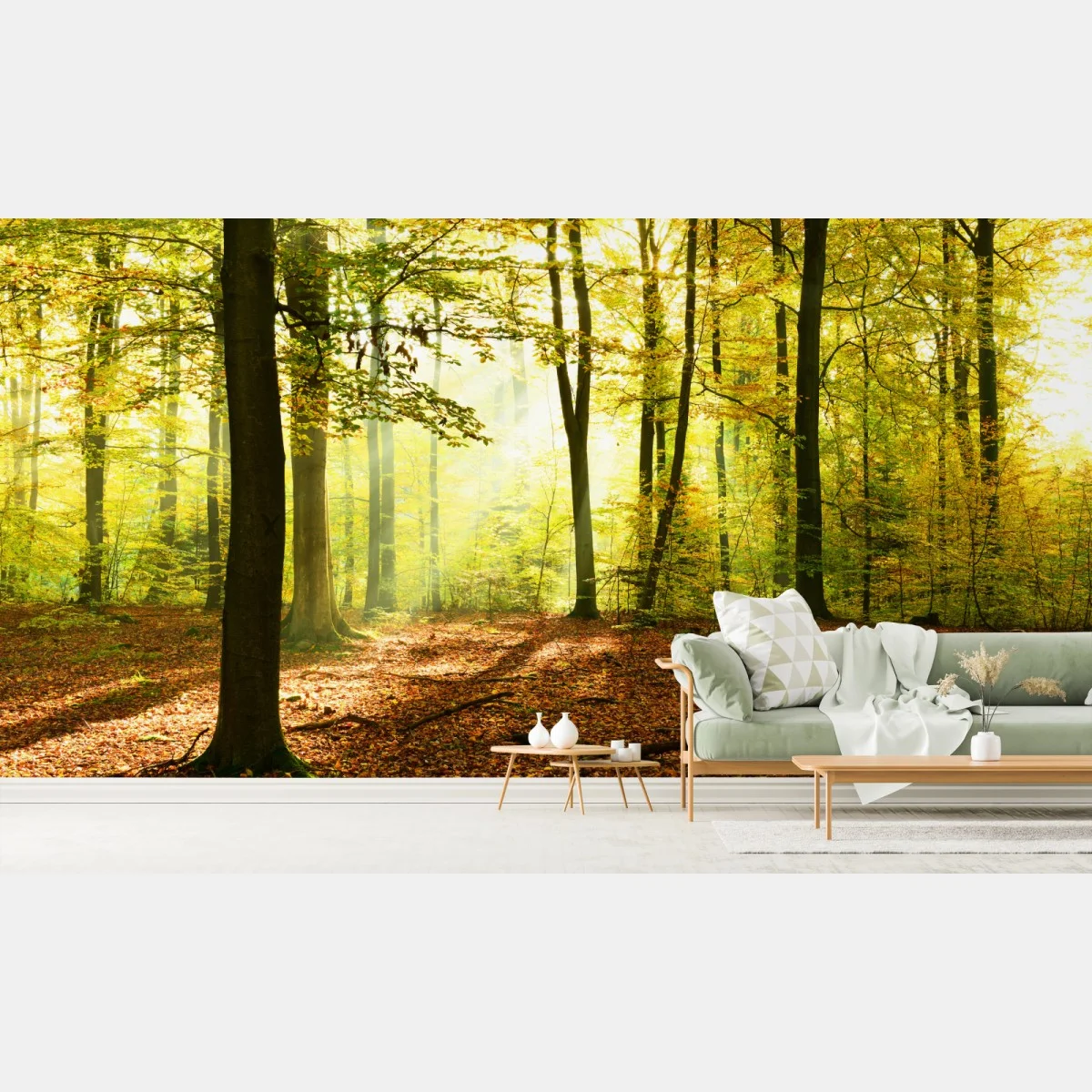 Fototapete Goldener herbstwald am morgen