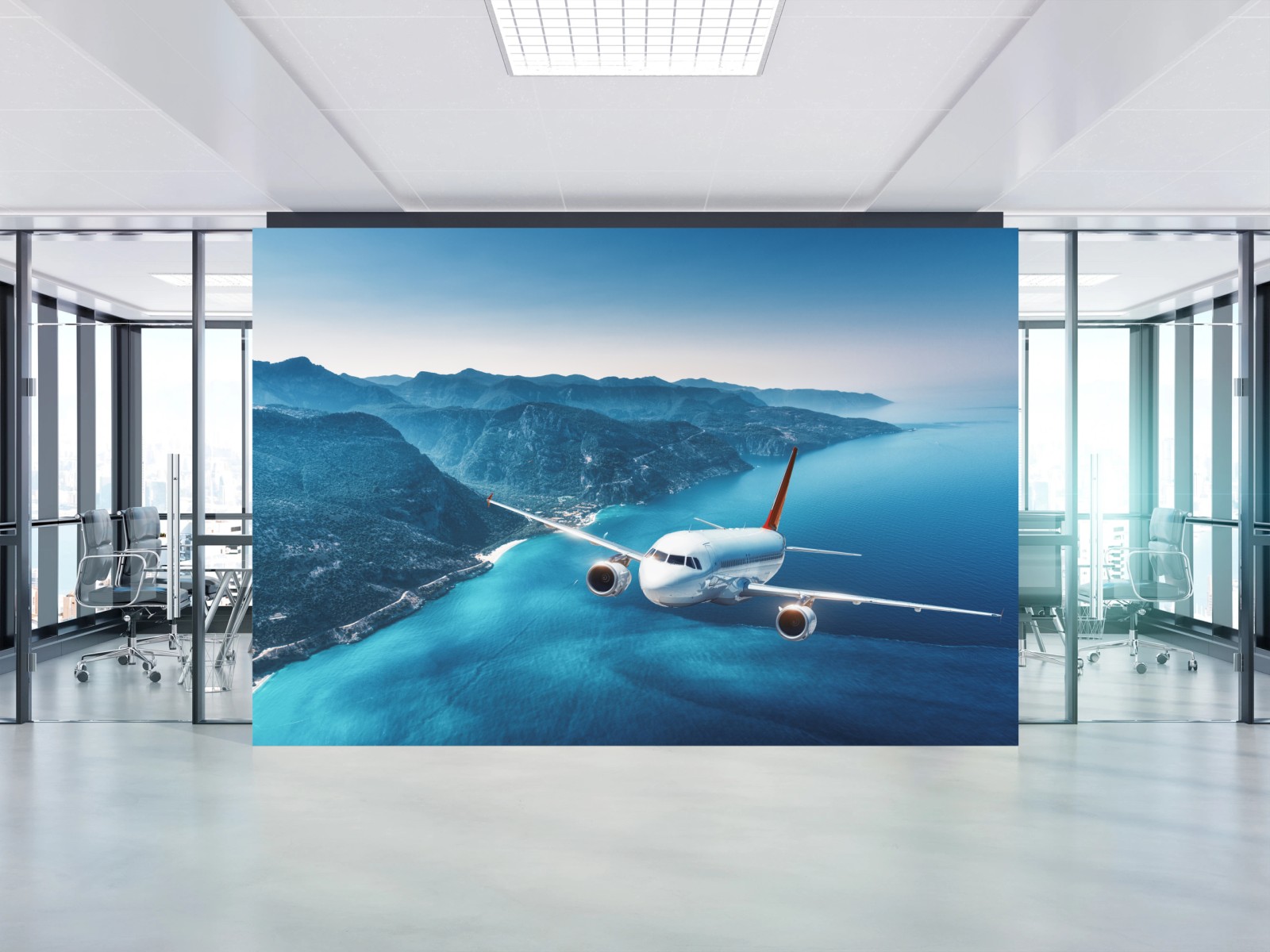 Fototapete Küstenflug über türkisblauem meer