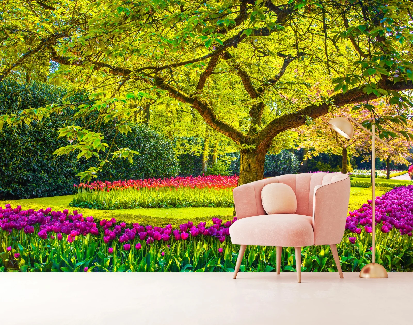 - bunt, blumen, landschaft, park, frühling, garten, niederlande, tulpen, baum, keukenhof