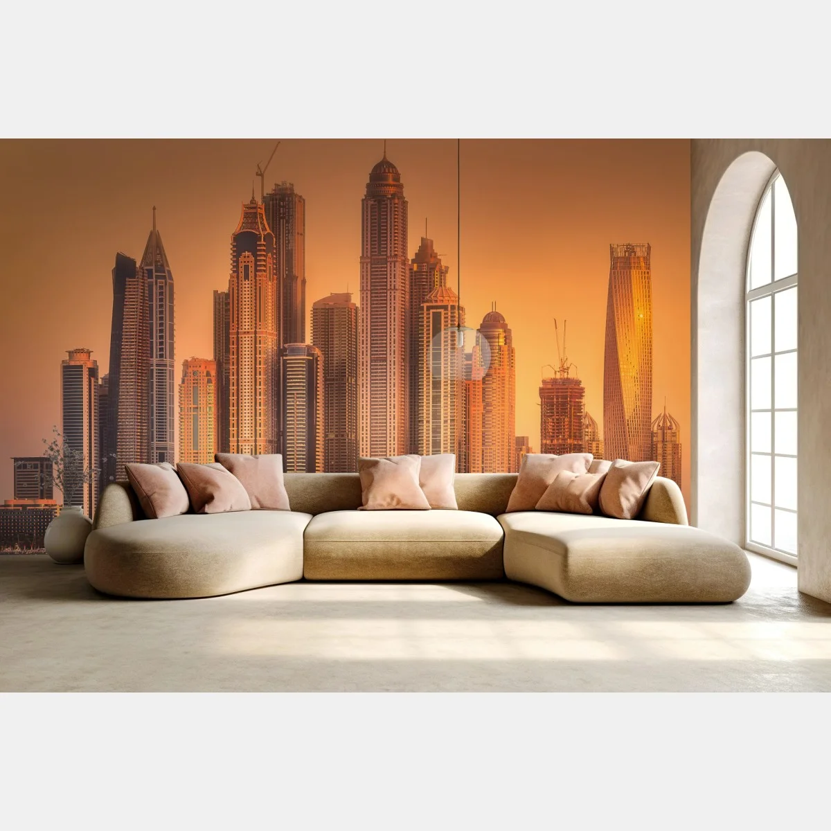 Fototapete Dubai skyline im goldenen licht