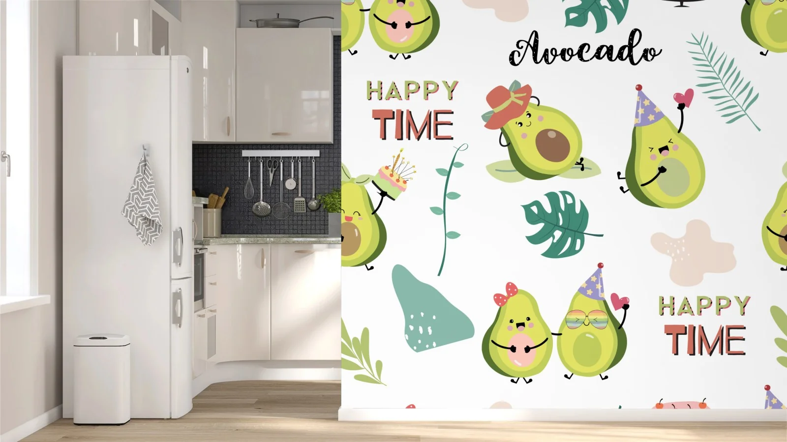 - Vinyl: Robust und feuchtigkeitsbeständig, entwickelt für anspruchsvolle Räume wie Küchen oder Badezimmer. Das glänzende Finish hebt lebendige Farben hervor, und das Material ist resistent gegen mechanische Beschädigungen.