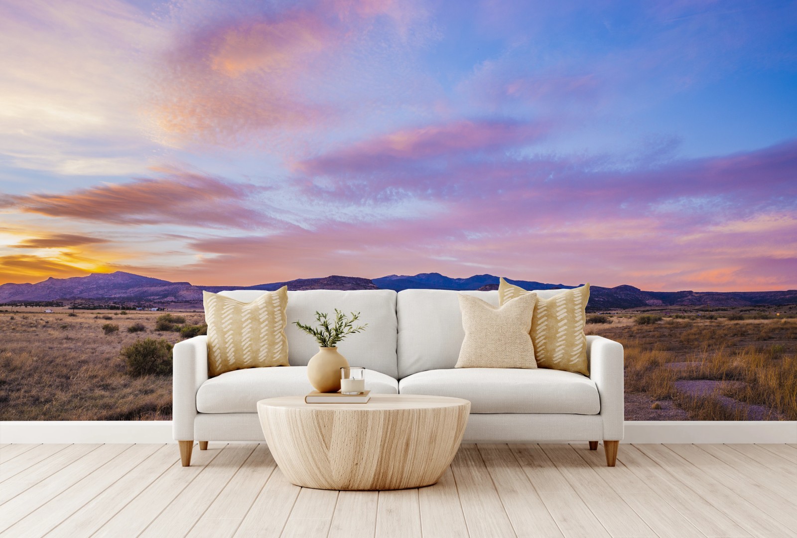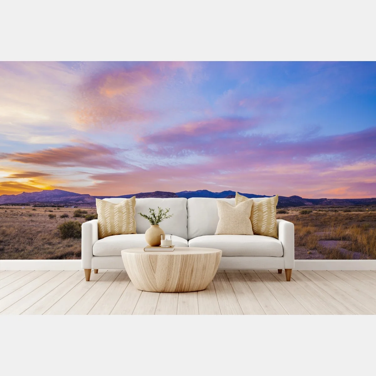 Fototapete Pastellsonnenuntergang über wüstenbergen