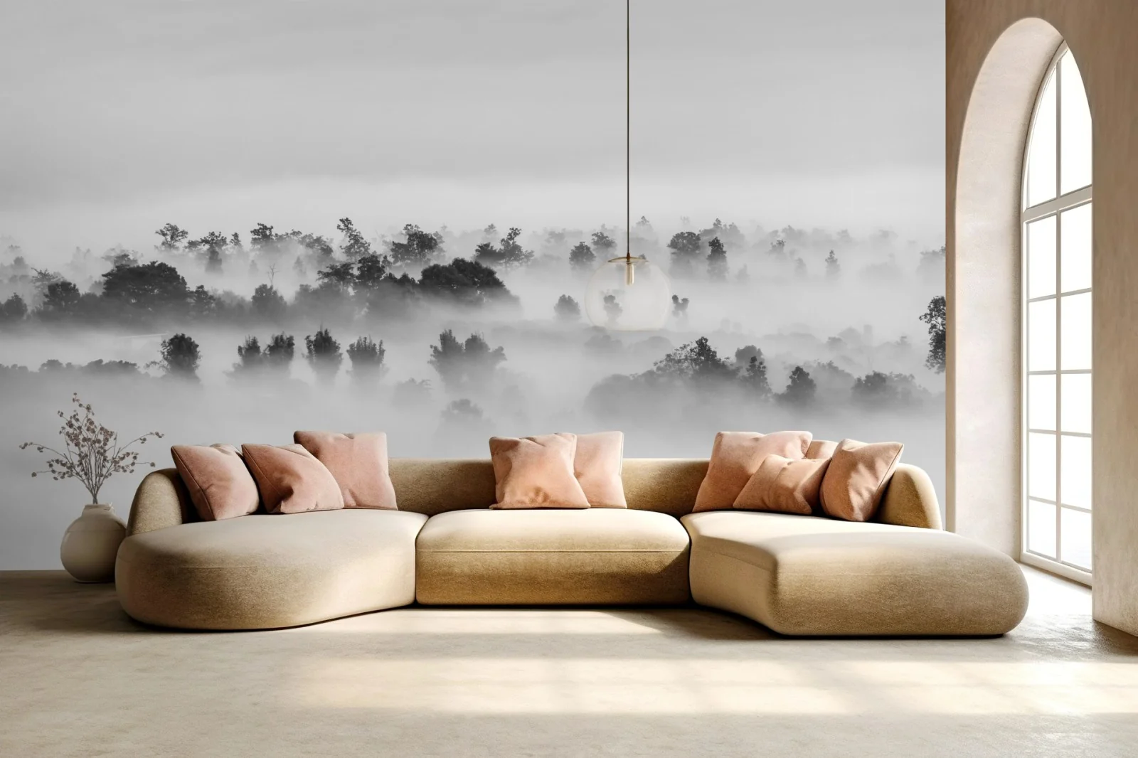 Fototapete Nebliger wald in monochrom