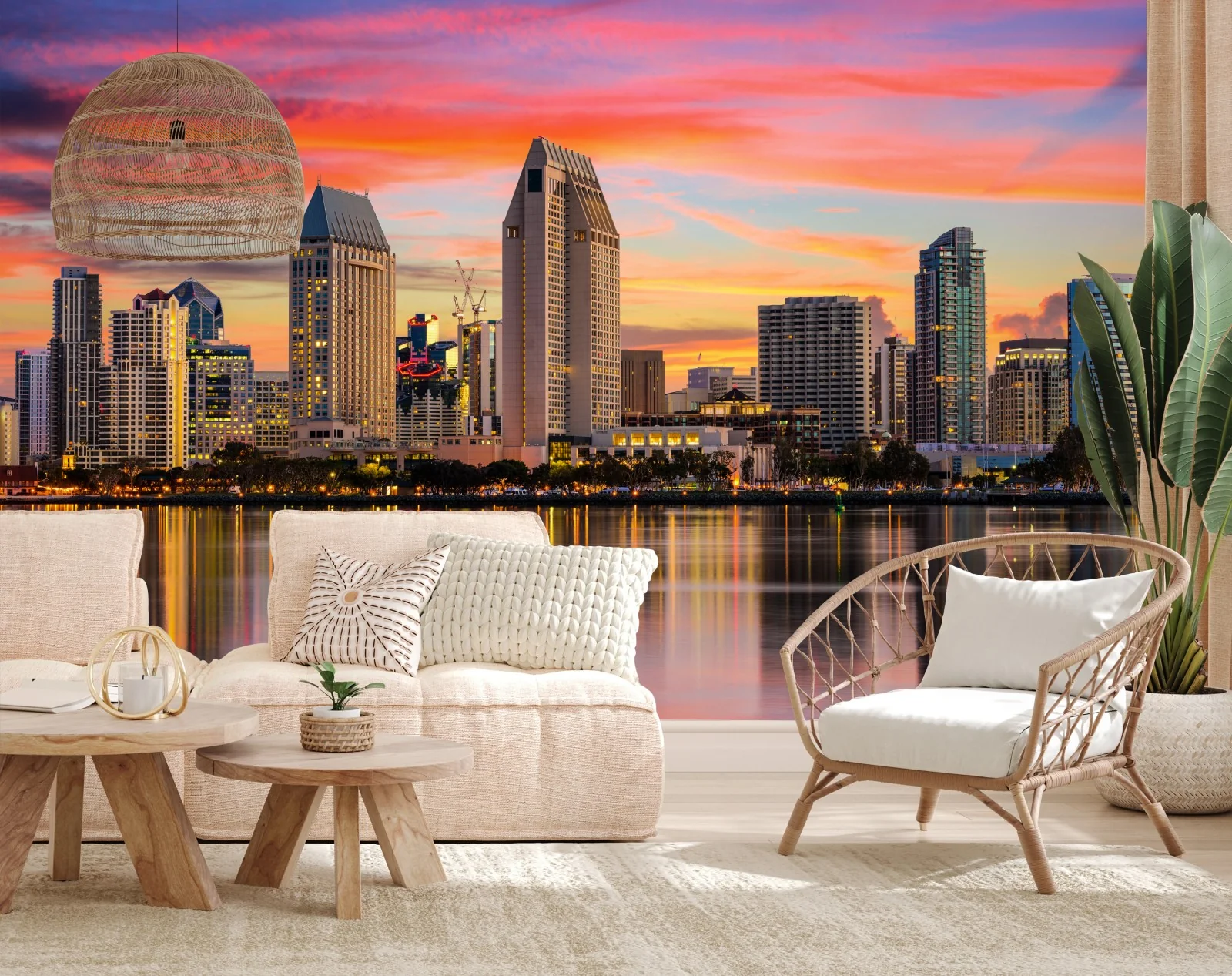 Fototapete San Diego skyline bei sonnenuntergang