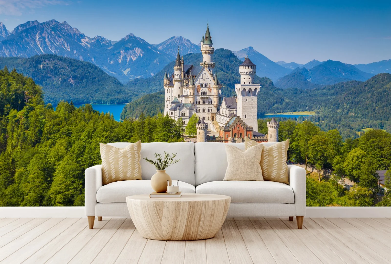 Fototapete Schloss Neuschwanstein in alpiner landschaft