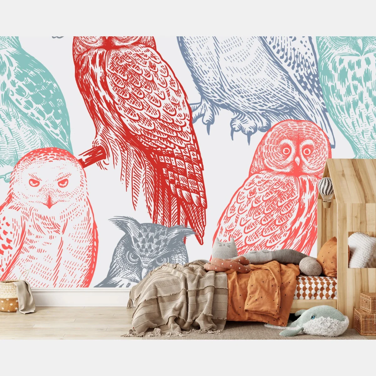 - tiere, illustration, natur, vintage, muster, vögel, tapete, nahtlos, handgezeichnet, eulen