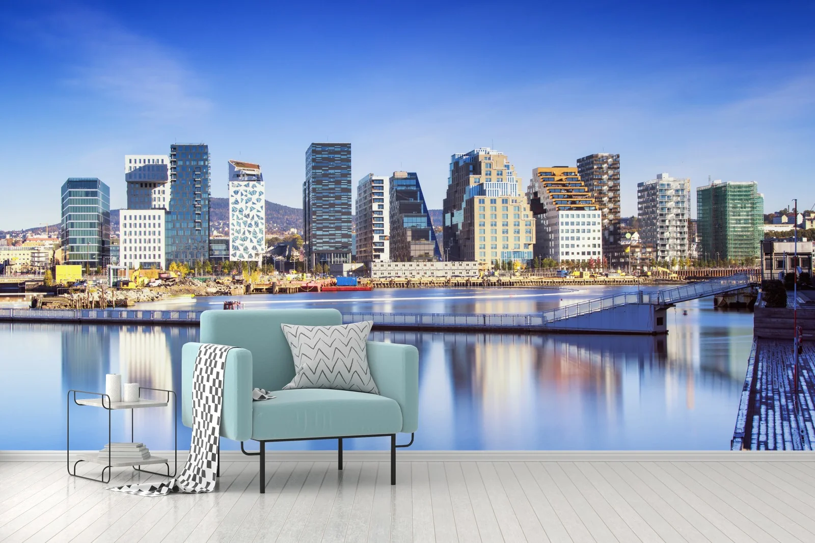 Fototapete Moderne ufer skyline mit spiegelungen