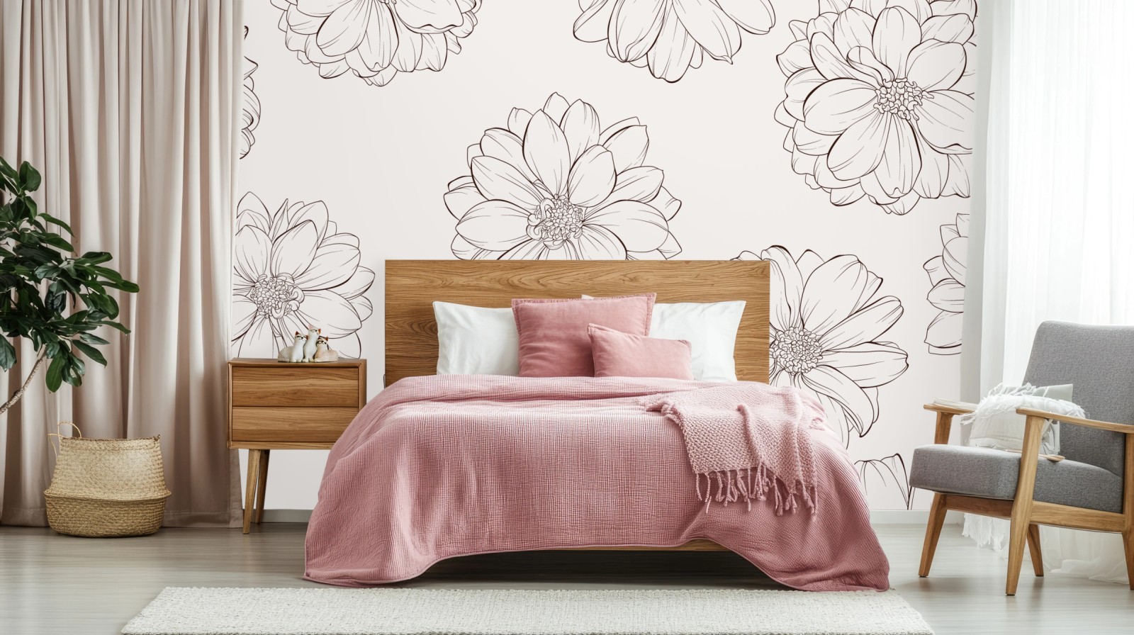 Fototapete Zartes blumenmuster in beige