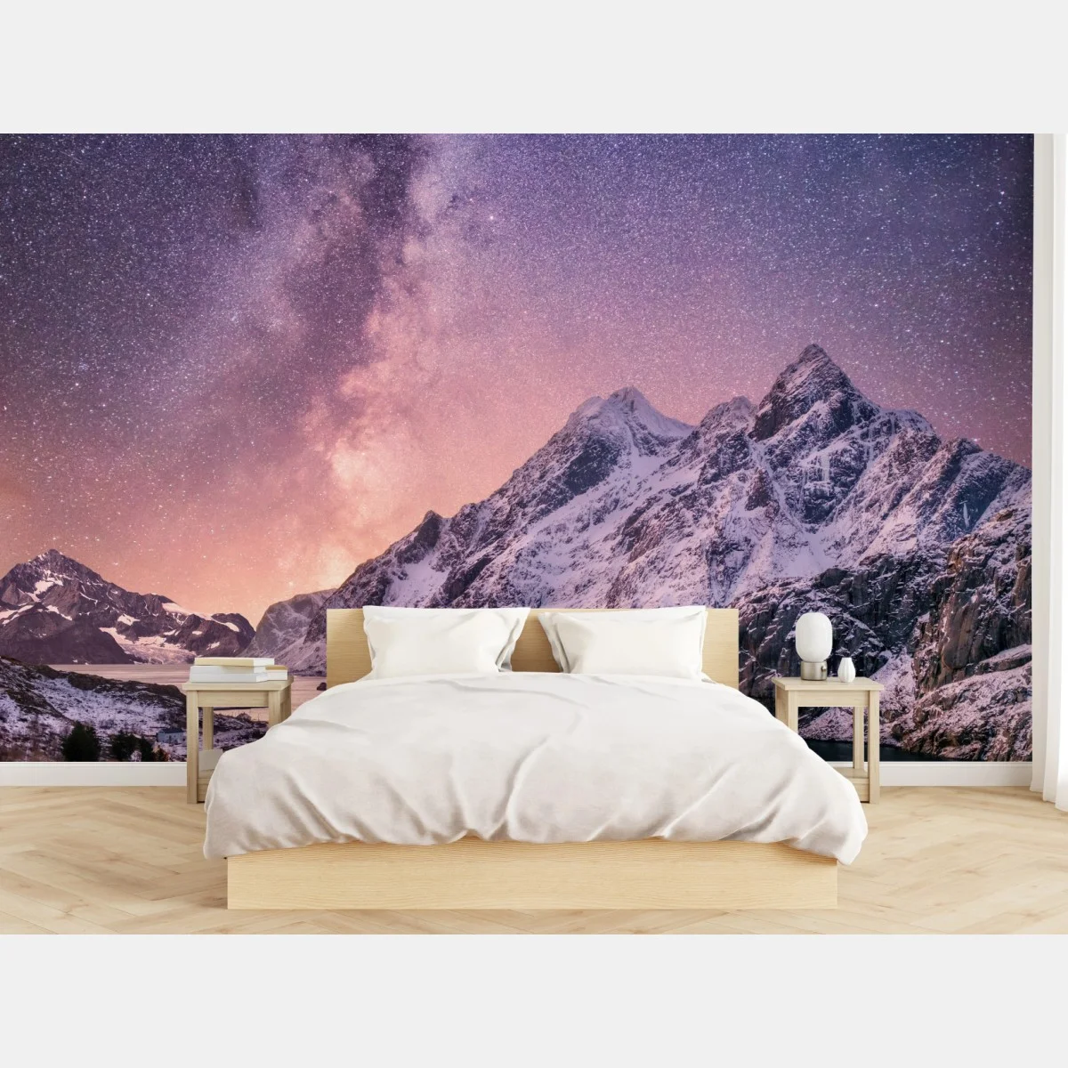 Fototapete Milchstraße über verschneiten bergen in Norwegen