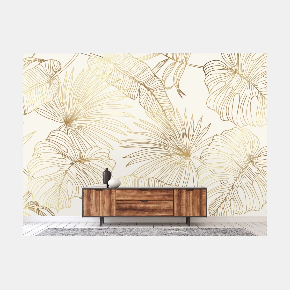 - minimalistisch, natur, gold, muster, wanddeko, beige, tropische blätter, elegant, botanik, linienkunst