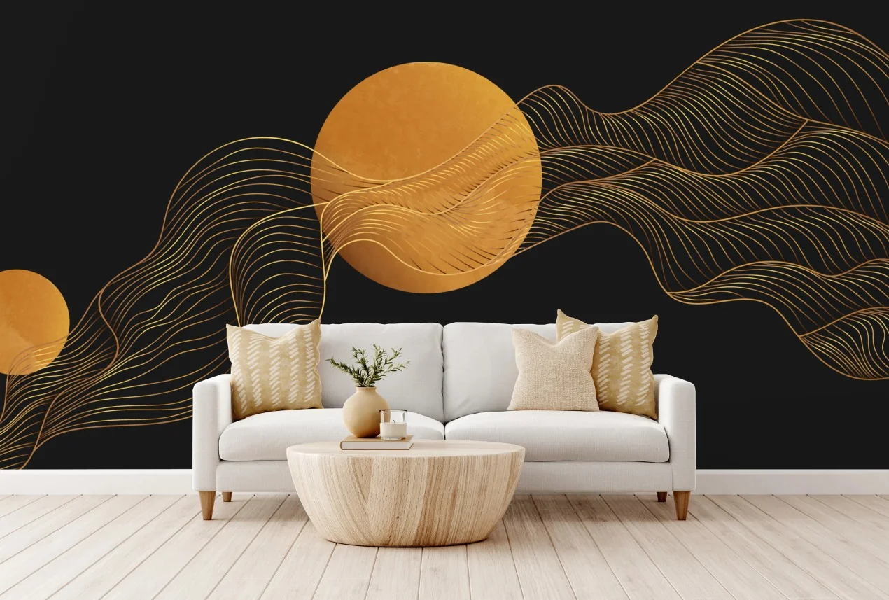 minimalistisch, modern, abstrakt, gold, schwarz, wellen, geometrisch, kreis, edel, linien